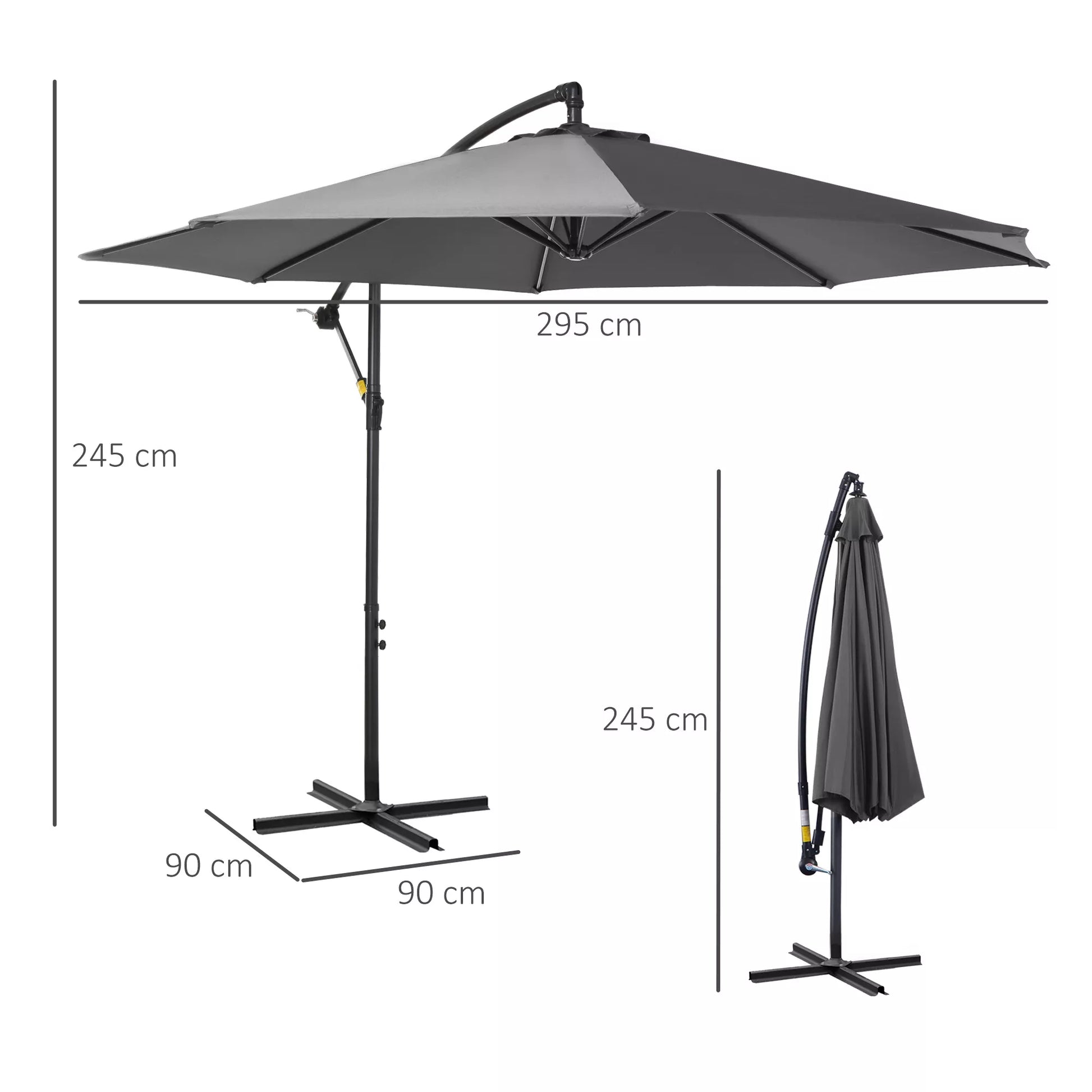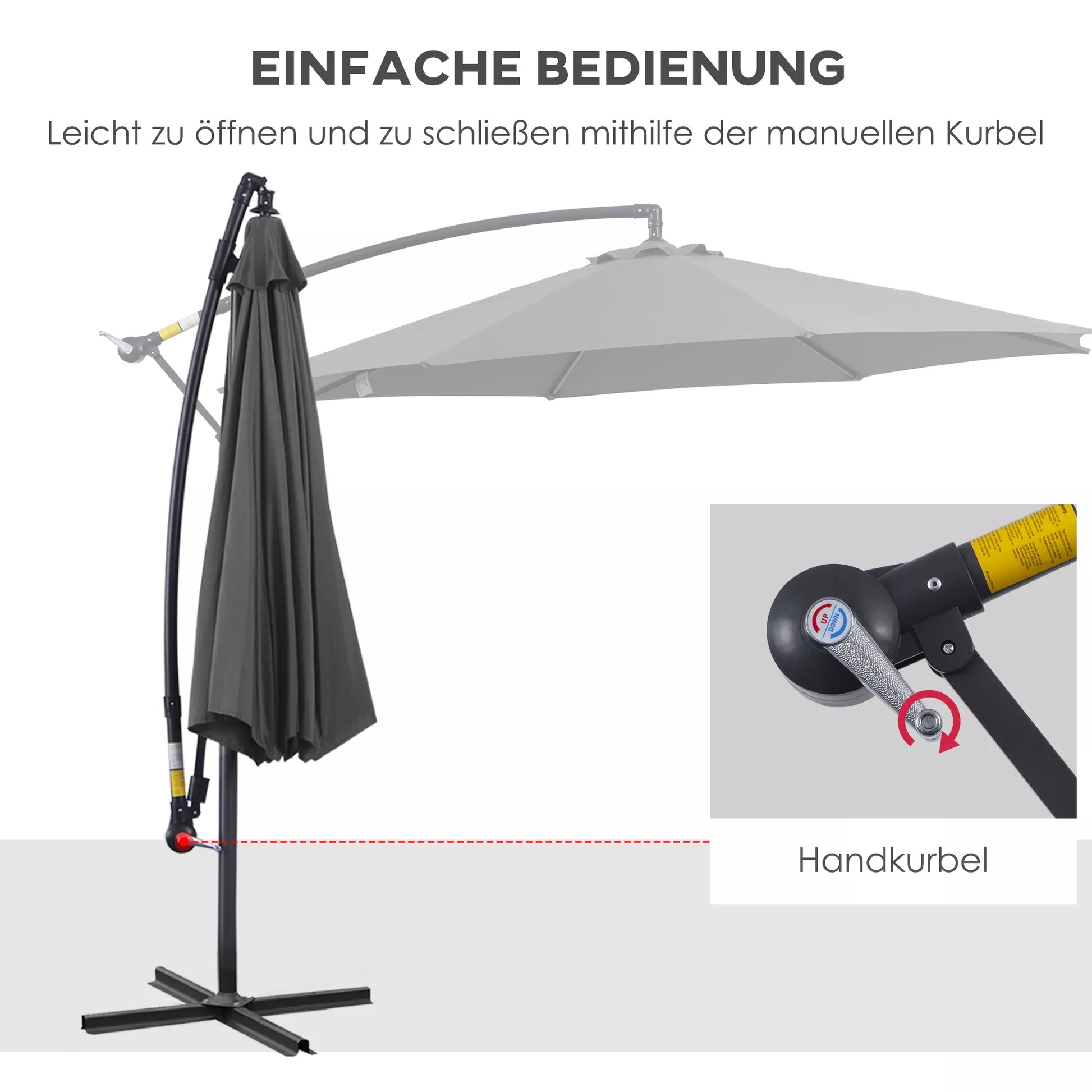 Mūsų aukštos kokybės ir didelis šoninis skėtis yra puikus pavėsinimo sprendimas saulėtomis dienomis. Jis gali būti universalus pasirinkimas jūsų terasai, balkonui ar vakarėliui. Skėčio stiebas pagamintas iš tvirto plieno. Pats skėtis pagamintas iš vandeniui atsparaus poliesterio. Skėčio gaubto pasvirimo kampas gali būti lanksčiai reguliuojamas, kad galėtumėte mėgautis geriausia apsauga nuo stiprios saulės. Dėl rankinio susukimo mechanizmo jūsų sodo skėtį lengva atidaryti ir uždaryti. Vasara gali prasidėti!