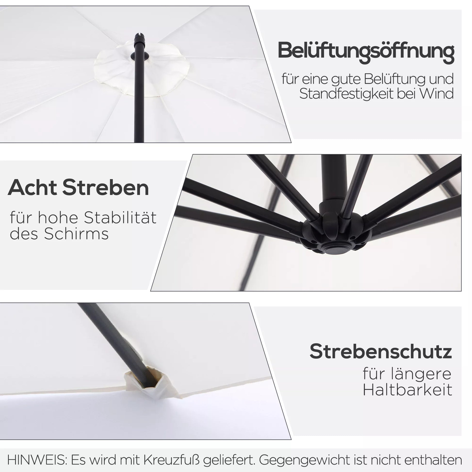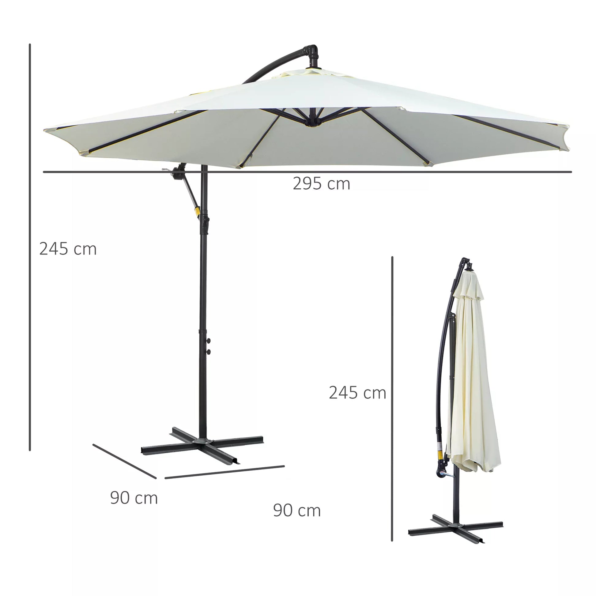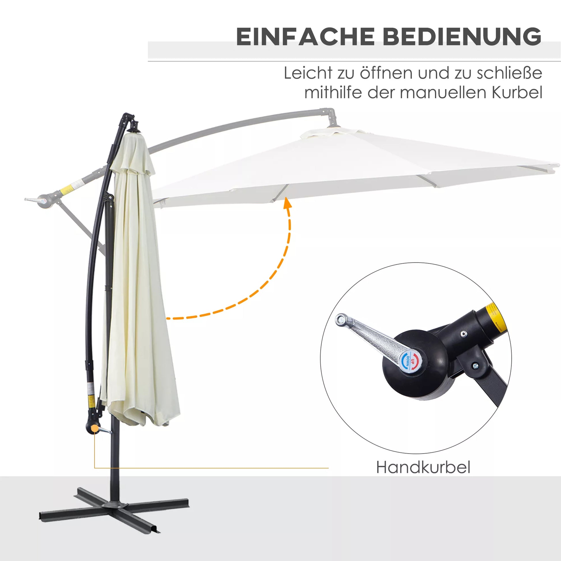 Skėtis nuo saulės su rankena, atsparus oro sąlygoms, 3 m x 3 m x 2,5 m, plienas, poliesteris