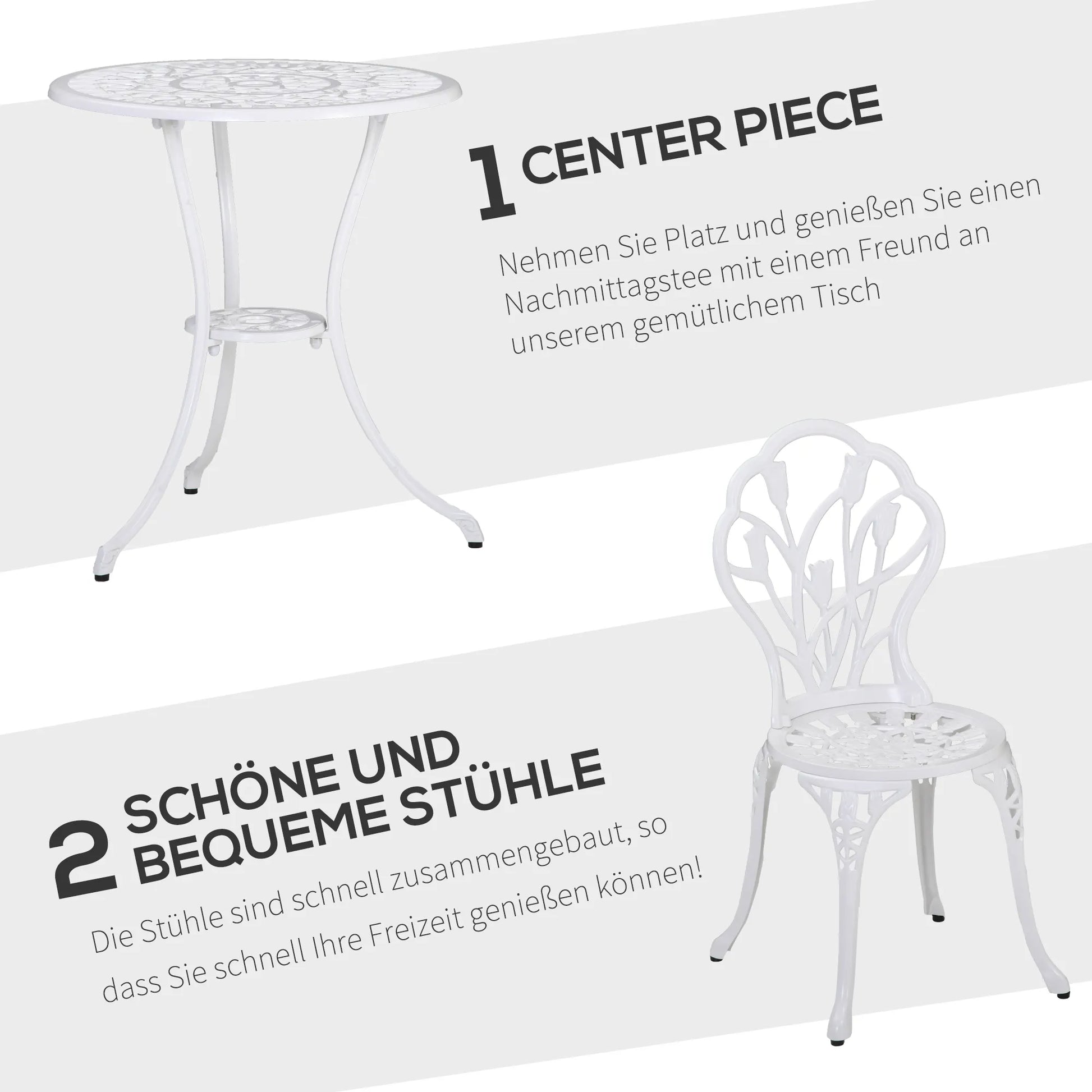 Šis 3 dalių lauko baldų komplektas yra geriausias pasirinkimas mėgautis grynu oru namuose, sode ar kitose vietose. Šis bistro komplektas pasižymi paprasta ir modernia išvaizda, tinkama įvairioms progoms. Galite mėgautis juo su draugu, kad surengtumėte malonią popietės arbatą sode.