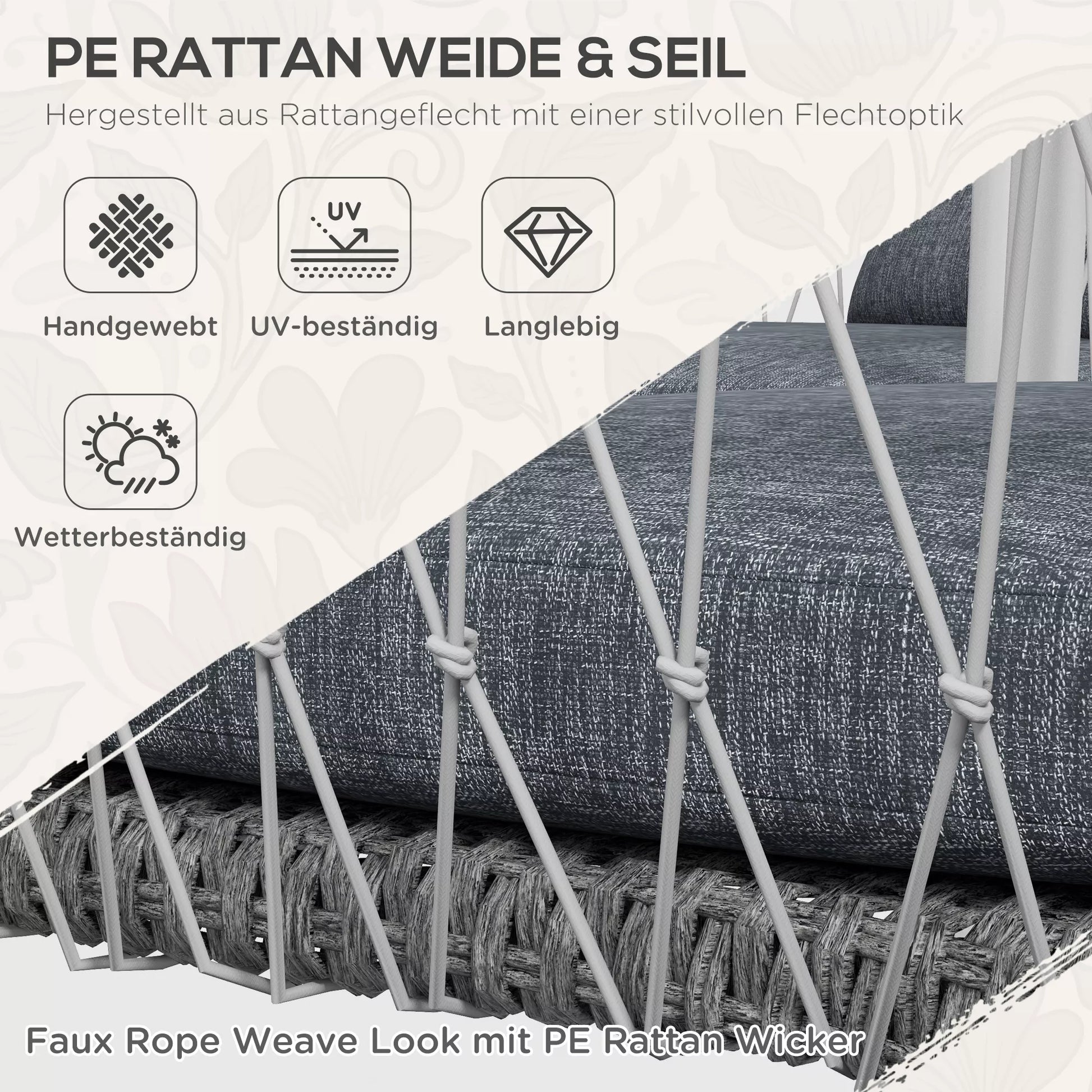 Sodo baldų komplektas, 4 dalių, supimosi funkcija, sėdimųjų pagalvių komplektas, poliratanas, metalinis rėmas, pilka
