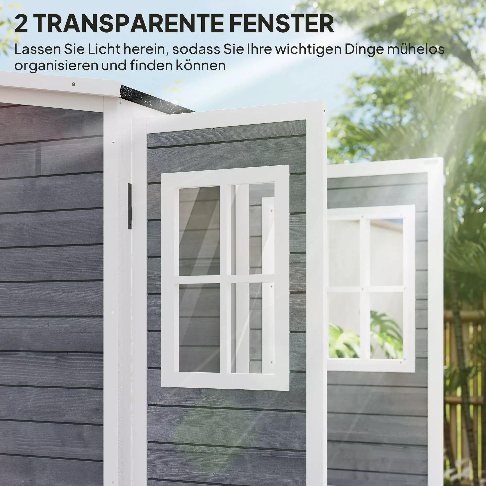 Optimizuokite savo sodo darbus su mediniu sodo nameliu! Šis sodo namelis turi du permatomus langus, kurie natūraliai apšvies jūsų namelį. Šlaitinis, vandeniui atsparus asfalto stogas apsaugo jūsų įrankius nuo drėgmės ir oro sąlygų. Saugiai užrakinamos durys su skląsčiu užtikrina, kad viskas būtų tvarkinga ir apsaugota.