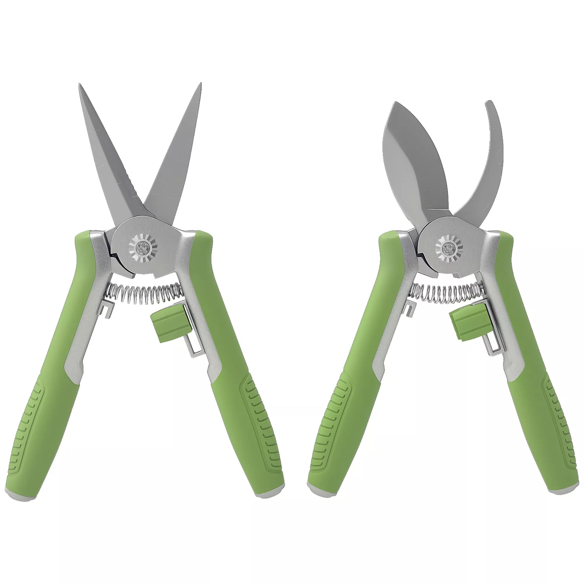 Sodo įrankių rinkinys, 2 vnt., nerūdijančio plieno sodo įrankiai, su genėjimo žirklėmis, žali+sidabriniai