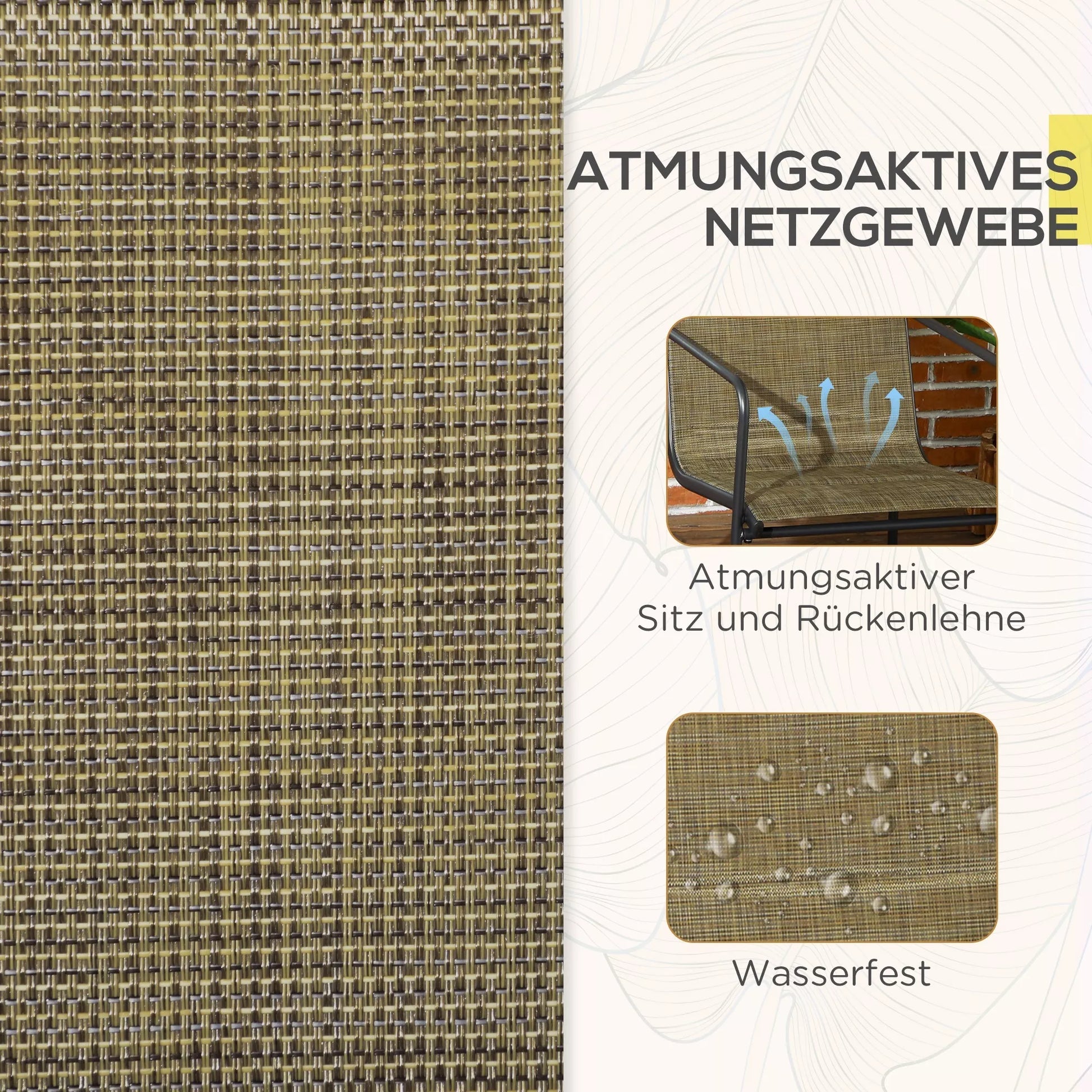 Sukurkite savo sodą svetingą, kaip ir jūsų svetainę, su šiuo "" sodo kėdžių komplektu! Lengvas metalinis rėmas yra itin tvirtas, o neplyštantis, kvėpuojantis audinio užvalkalas po daugelio metų atrodo kaip naujas. Kėdė turi aukštą atlošą ir patogius porankius optimaliam atramai. Metalinių kojų apačioje yra neslystančios pėdelės, užtikrinančios didelį stabilumą. Dekoratyvu ir funkcionalu – sukurkite kviečiančią atmosferą jūsų žaliuojančioje erdvėje!