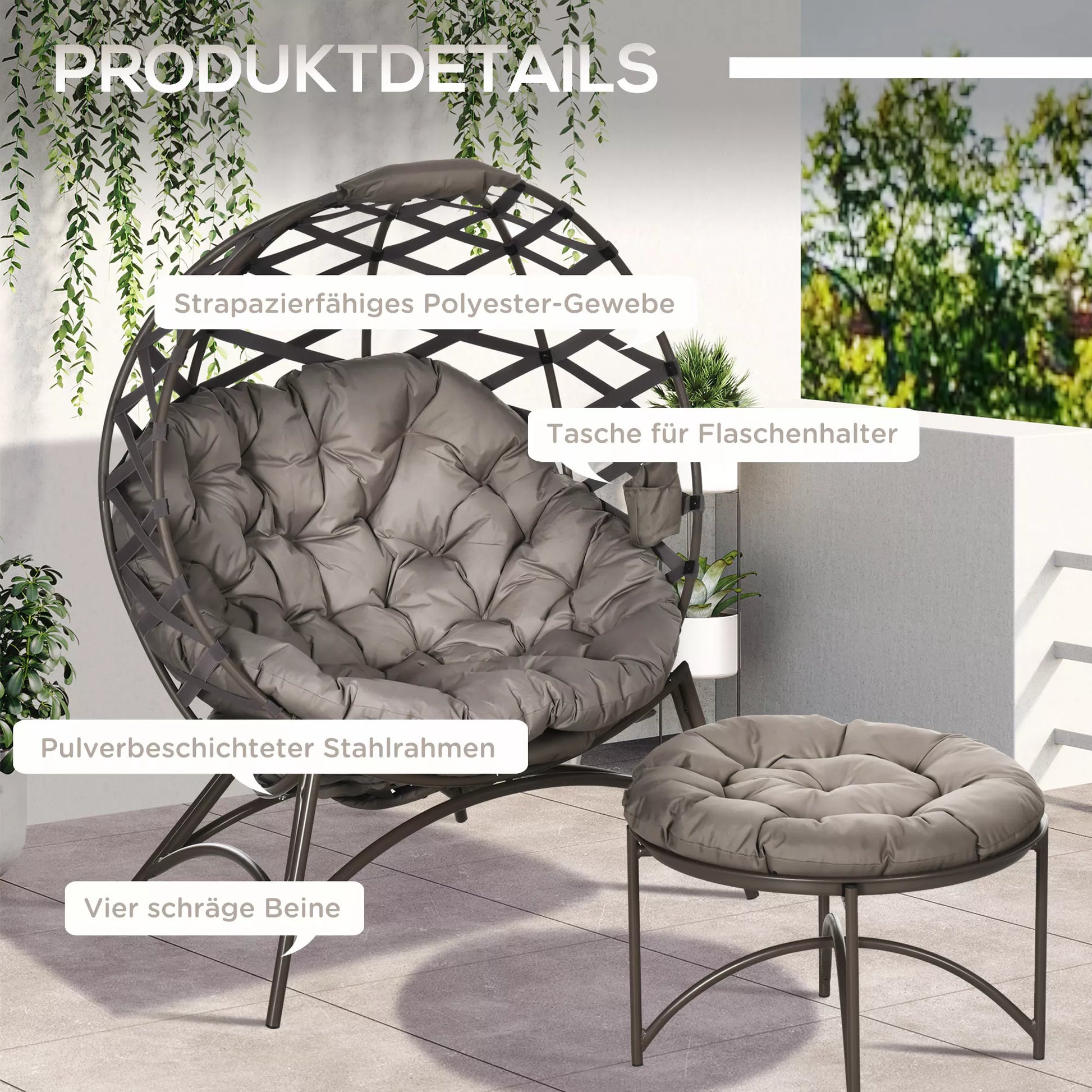 Mėgaukitės gaiviu sodo oru dviese ant šios jaukios sodo kėdės. Sėdimoji dalis leidžia patogiai įsitaisyti, o pufą akimirksniu galima paversti staliuku. Neįtikėtiną komfortą suteikia didelė, minkšta sėdimoji pagalvėlė, užpildanti visą krepšio formos sėdimąją dalį. Dėl praktiško sulankstomo dizaino kėdę, prireikus, galima sulankstyti ir pasidėti. Be to, tvirtas plieninis rėmas užtikrina bekompromisį stabilumą ir saugią pusiausvyrą.