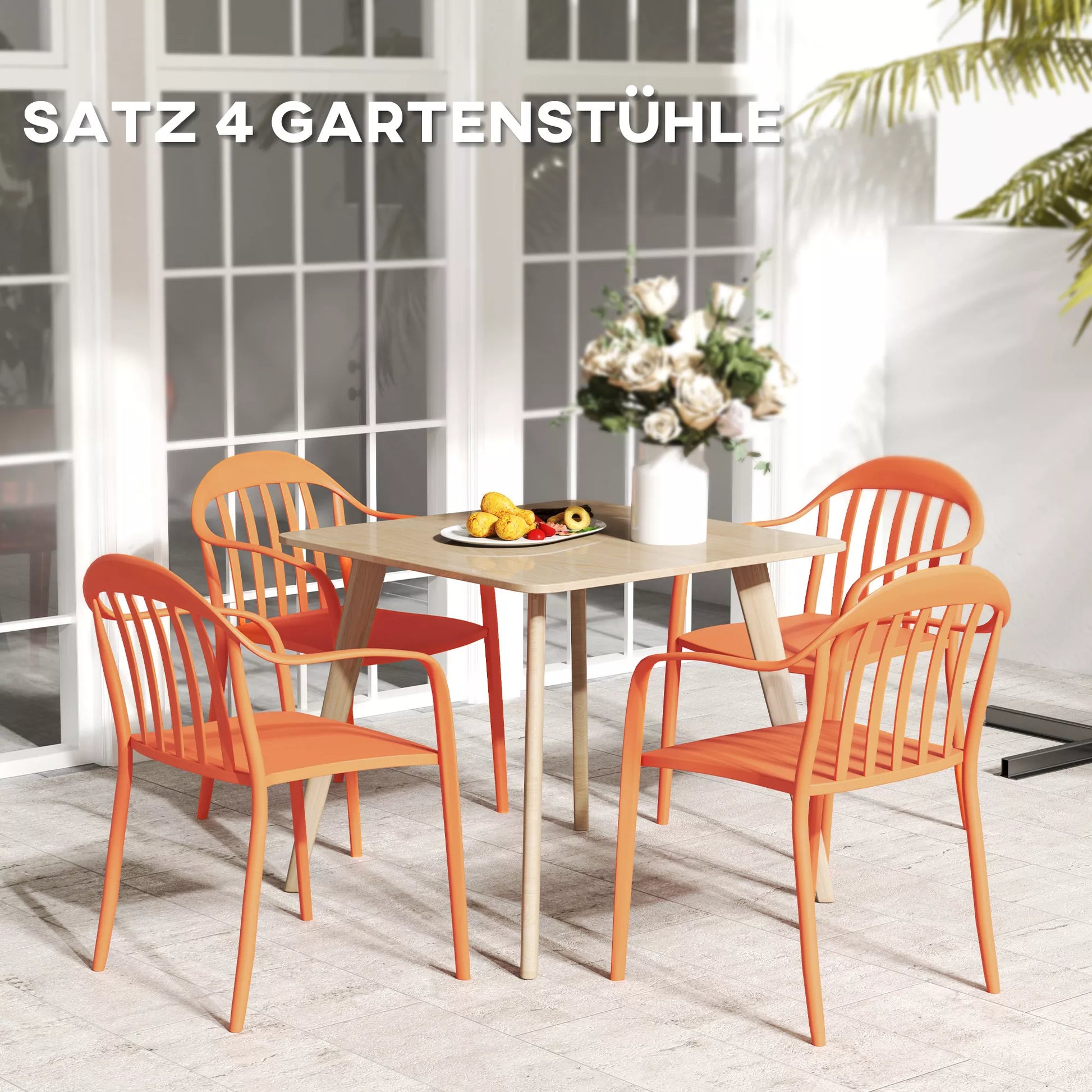 Lauko kėdžių rinkinys iš 4 vnt., atsparus oro sąlygoms, pagamintas iš plastiko, sukraunama kėdė su porankiais, atlošu, atlaiko iki 120 kg
