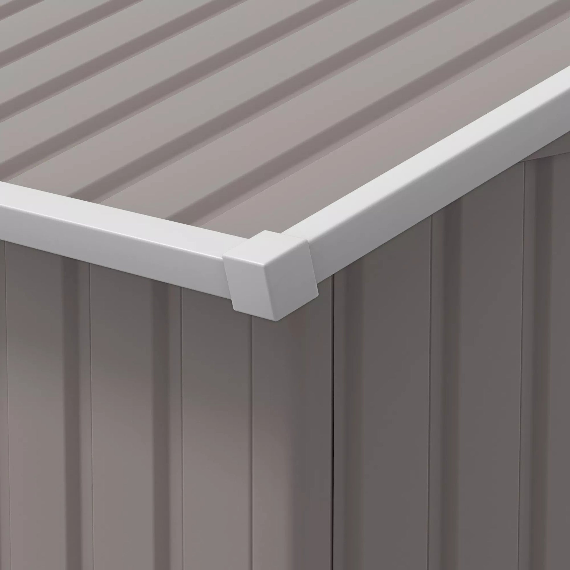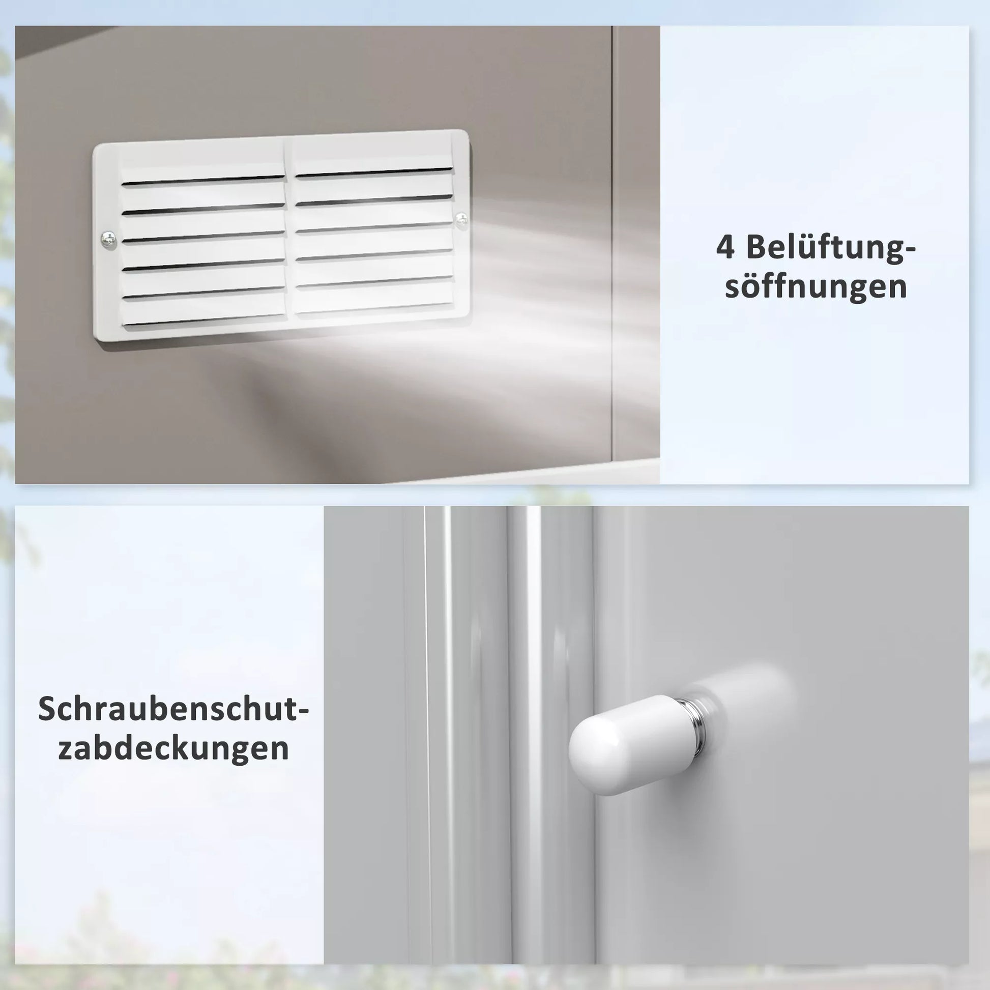 Sodo namelis įrankiams, atsparus oro sąlygoms, su ventiliacijos langeliais, stumiamosiomis durimis, plienas, šviesiai pilkas