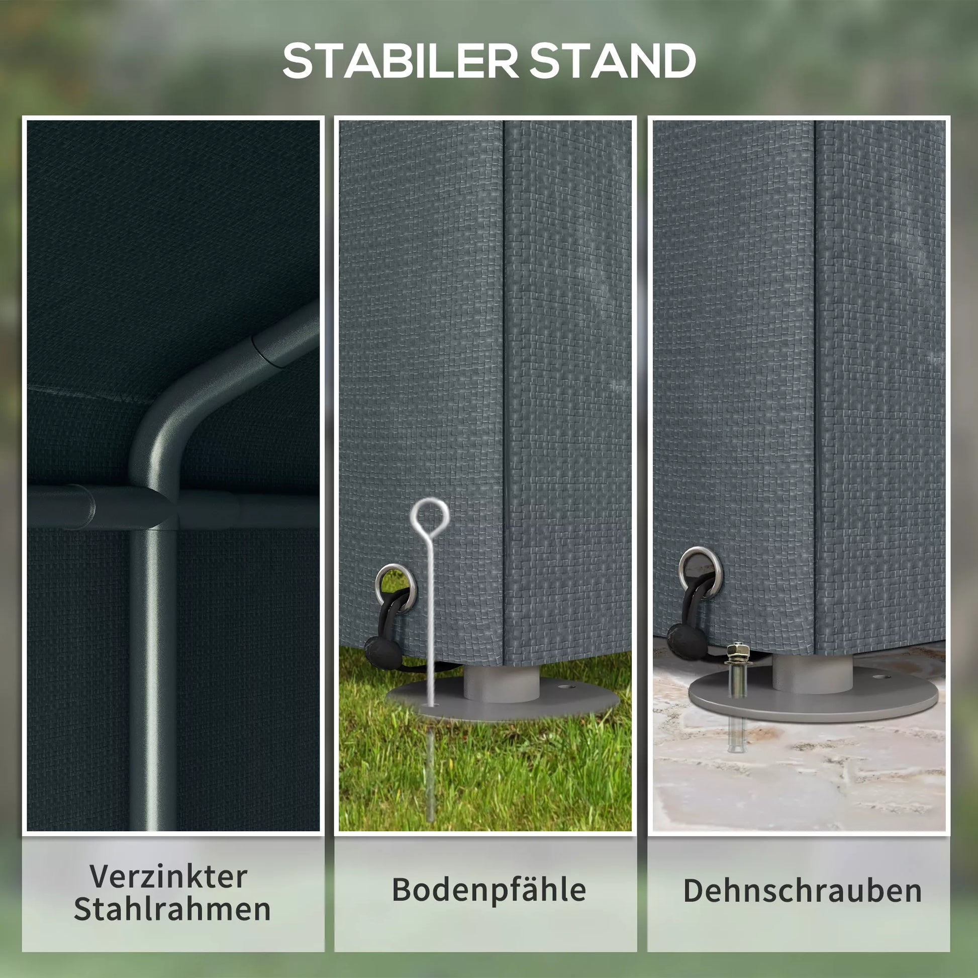 Atraskite mūsų patogaus įrankių sandėliuko, erdvaus prieglobsčio jūsų dviračiui, motociklui ar sodo įrangai, privalumus. Su UV spinduliams atspariu tentu ir tvirtu, cinkuoto plieno rėmu, jis apsaugos jūsų daiktus nuo lengvo vėjo, lietaus ir purvo. Didelės, užtrauktuku užsegamos durys suteikia lengvą prieigą ir leidžia be vargo laikyti daiktus. Idealiai tinka bet kuriai lauko erdvei!