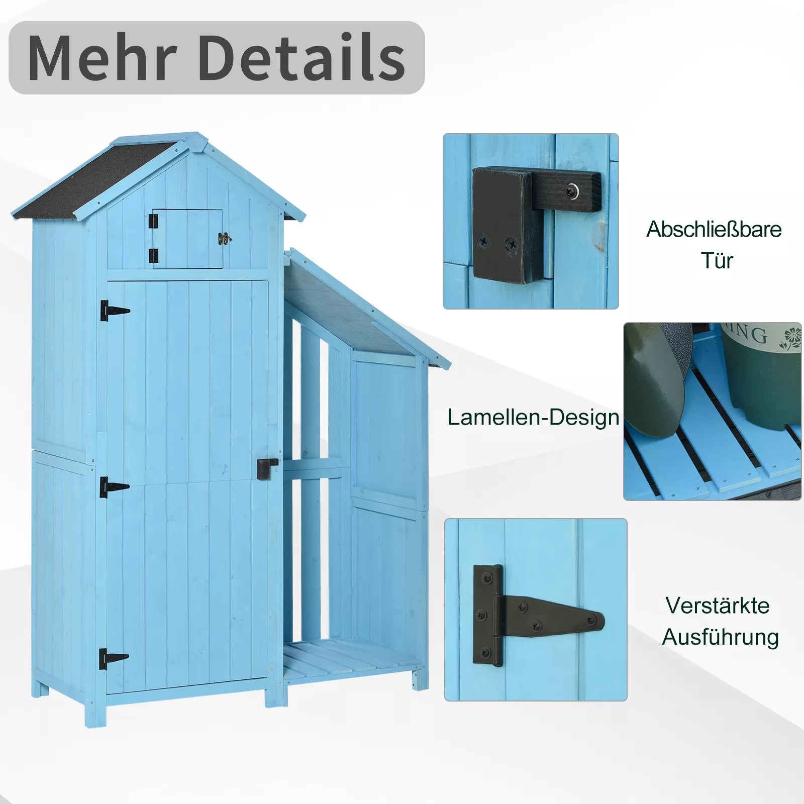 Šis kompaktiškas įrankių/sodo namelis suteikia daug vietos viduje. Papildoma lentyna sodo įrankiams ir lentynėlė malkoms padės palaikyti tvarką sode. Dėl asfalto dangos ir nuožulnaus dizaino stogas apsaugotas nuo stovinčio vandens. Eglės medienos įrankių namelis taip pat yra atsparus vandeniui ir oro sąlygoms. Užrakinamos durys suteikia daug saugumo. Šis įrankių/sodo namelis yra ideali vieta laikyti jūsų sodo įrankius.