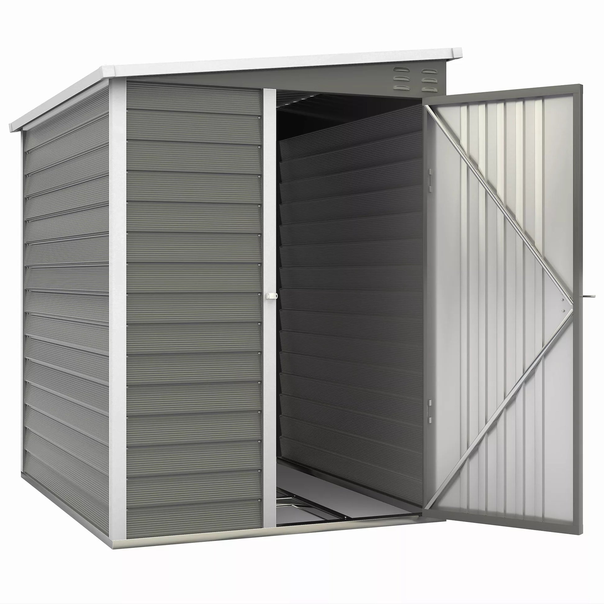 Metalo sodo namelis, cinkuotas plienas, užrakinamos durys, lengvas montavimas, 142 x 184 x 165/181 cm, pilkos spalvos