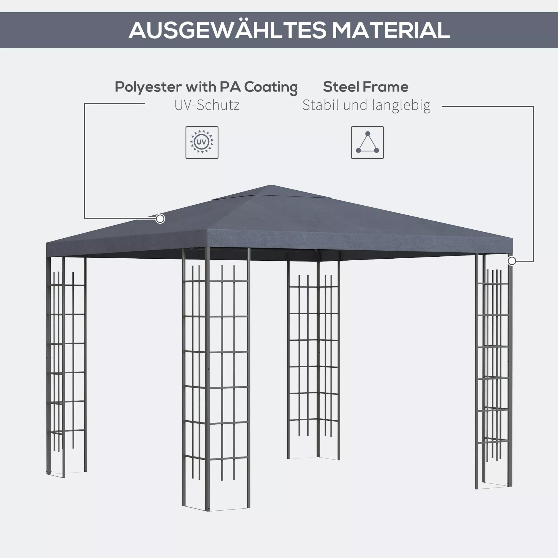 Sodo paviljonas 2,95 x 2,95 m Paviljonas Sodo palapinė Šventės palapinė Party palapinė Plienas Poliesteris Pilkas
