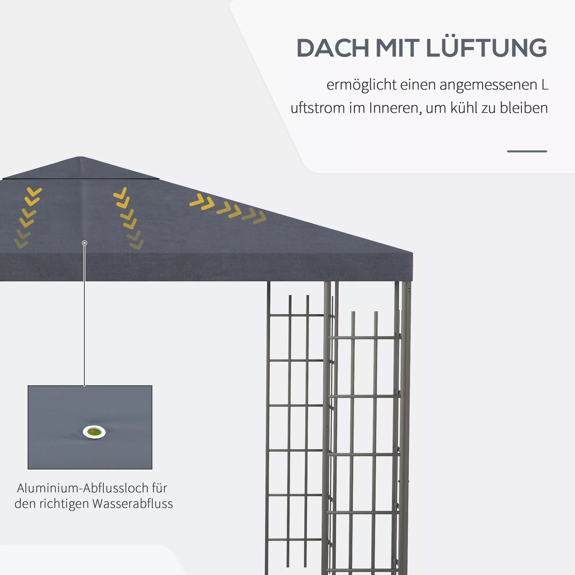 Šis 3 x 3 m dydžio pavėsine yra puikus būdas elegantiškai atnaujinti jūsų lauko erdvę ir sukurti atpalaiduojančią poilsio zoną. Sodo pavėsinė suteikia saugią apsaugą nuo saulės karštomis vasaros dienomis, o tvirtas plieninis rėmas užtikrina didelį stabilumą ir ilgaamžiškumą. Stogas pagamintas iš dengto poliesterio, jame yra ventiliacijos anga ir aštuonios nutekėjimo angos lietaus vandeniui nubėgti. Dabar jūsų sodas šventei niekas netrukdys!