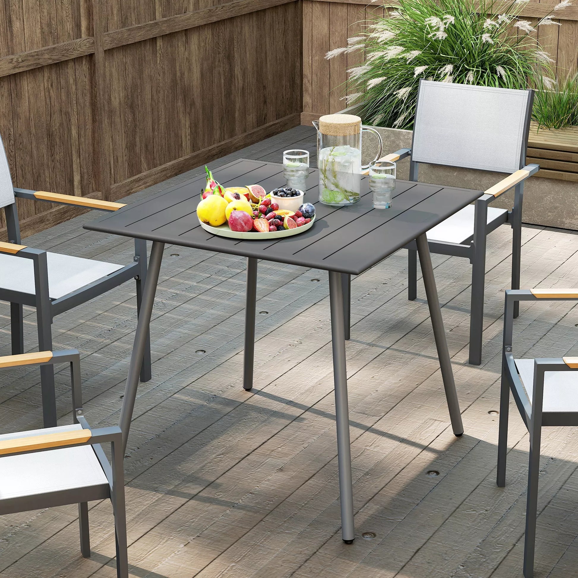 Lauko stalas 4 asmenims, plieninio rėmo, lengvai valomas, atsparus rūdims, 80 x 80 x 74 cm, pilkos spalvos