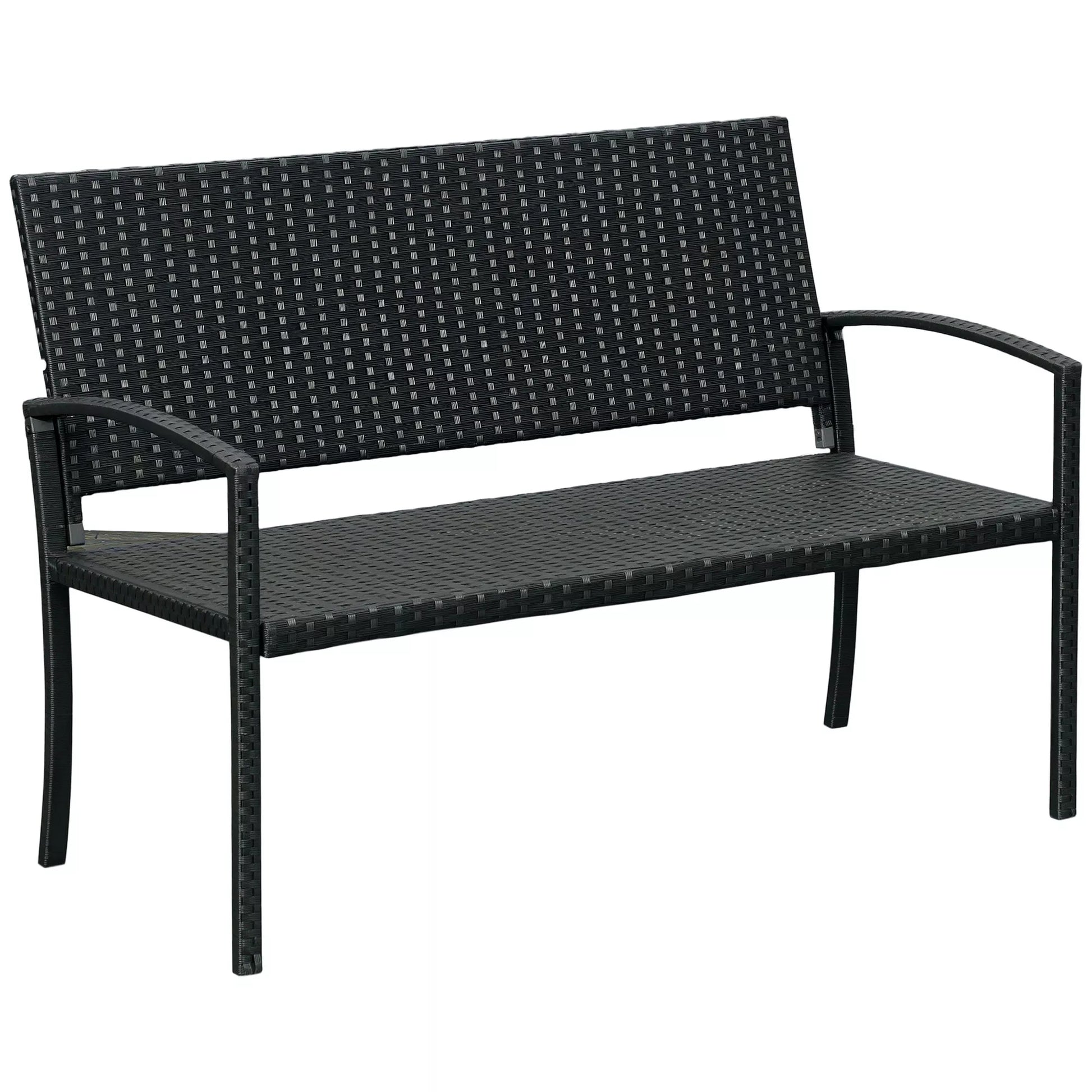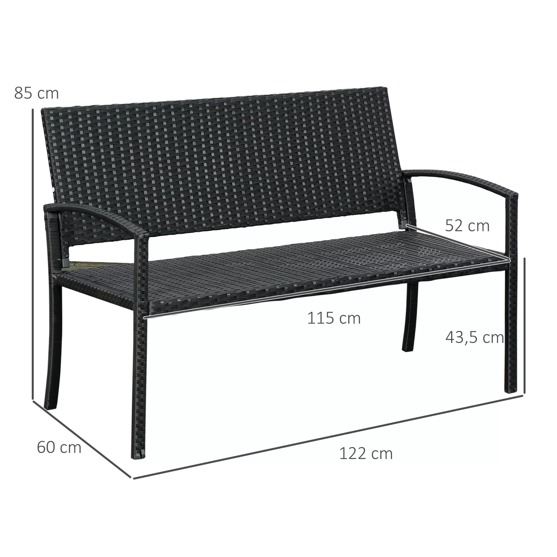 Sodo suolas, rotango imitacijos, su plieniniu rėmu, skirtas 2 žmonėms, juodos spalvos, 122 x 60 x 85cm