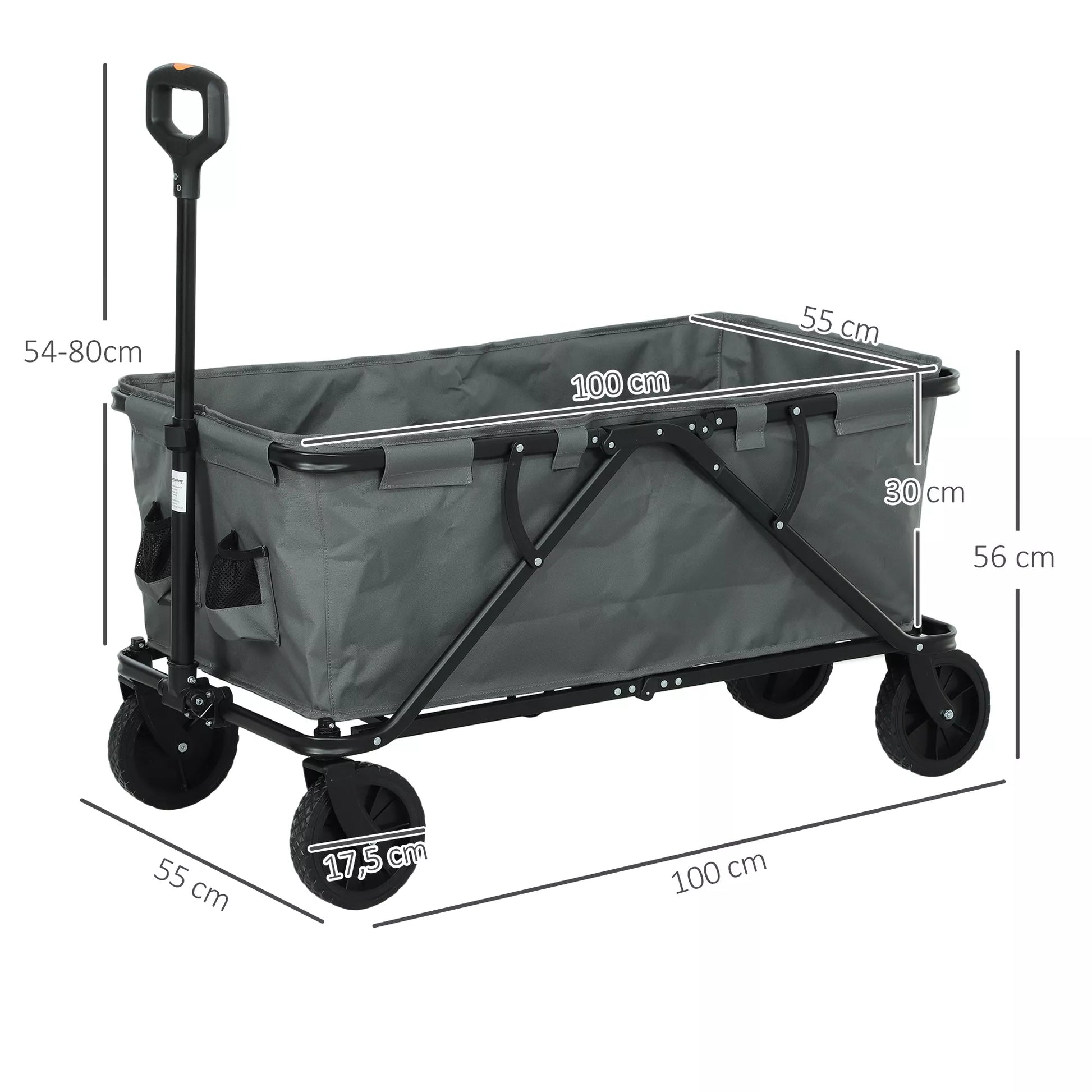 Atraskite gamtą be vargo su sulankstomu vežimėliu! Dėl didelės 160 L talpos ir praktiškų kišenių, pagamintas iš tvirto „Oxford“ audinio ir su sklandžiais 360° pasukamais priekiniais ratais, šis paplūdimio vežimėlis yra puikus partneris išvykoms į paplūdimį, stovyklavimui ar sodininkystei.