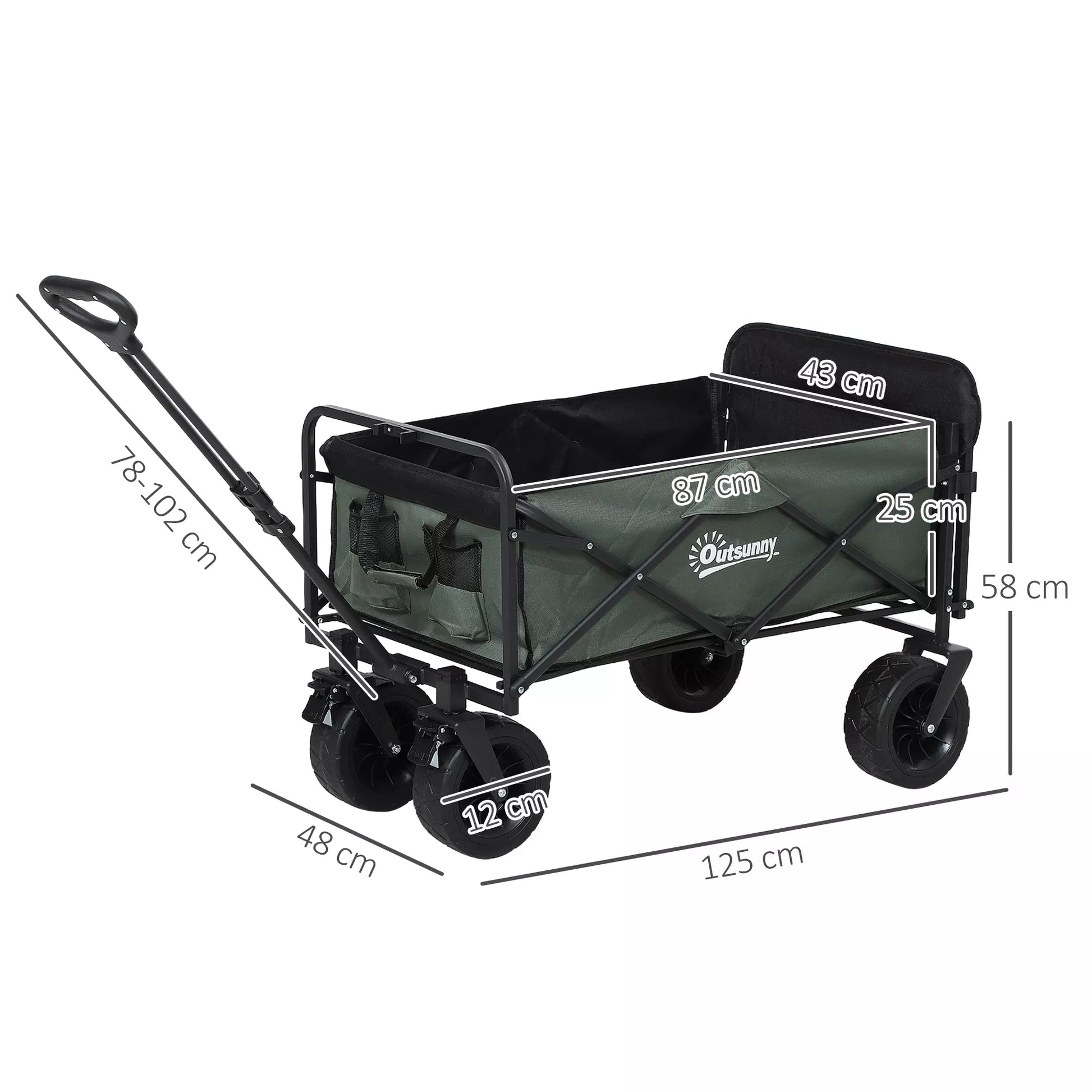 Patirkite „Outsunny“ sulankstomo vežimėlio patogumą – jūsų patikimo palydovo visose lauko veiklose! Su 95L talpa ir naudingomis kišenėmis šis paplūdimio vežimėlis palengvina jūsų įrangos gabenimą. Tvirtas, lengvai prižiūrimas 600D Oxfordo audinys ir nerūdijantis rėmas daro šį sulankstomą vežimėlį puikiu kompanionu paplūdimiui, stovyklavimui ar sodui. Lengvai sulankstomas ir sandėliuojamas – sumanus transportavimas paprastas!