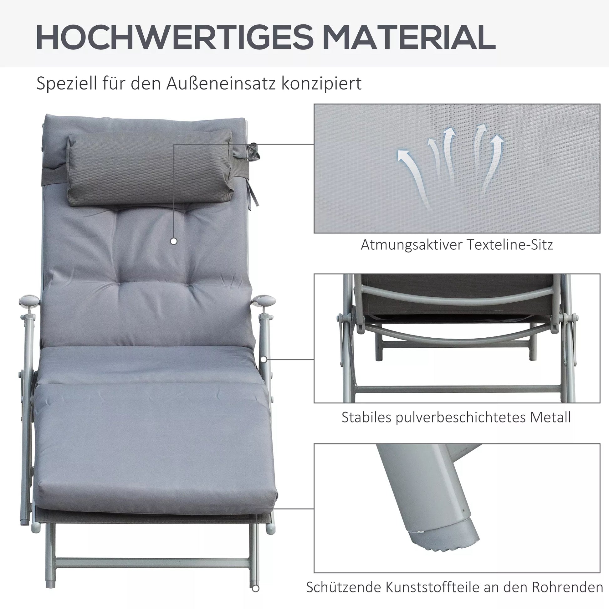 Sulankstoma lauko gultas su pagalvėlėmis ir 7 padėčių atlošo reguliavimu, atlaikantis iki 165 kg, sodui, atostogoms, lauke, pilkos spalvos