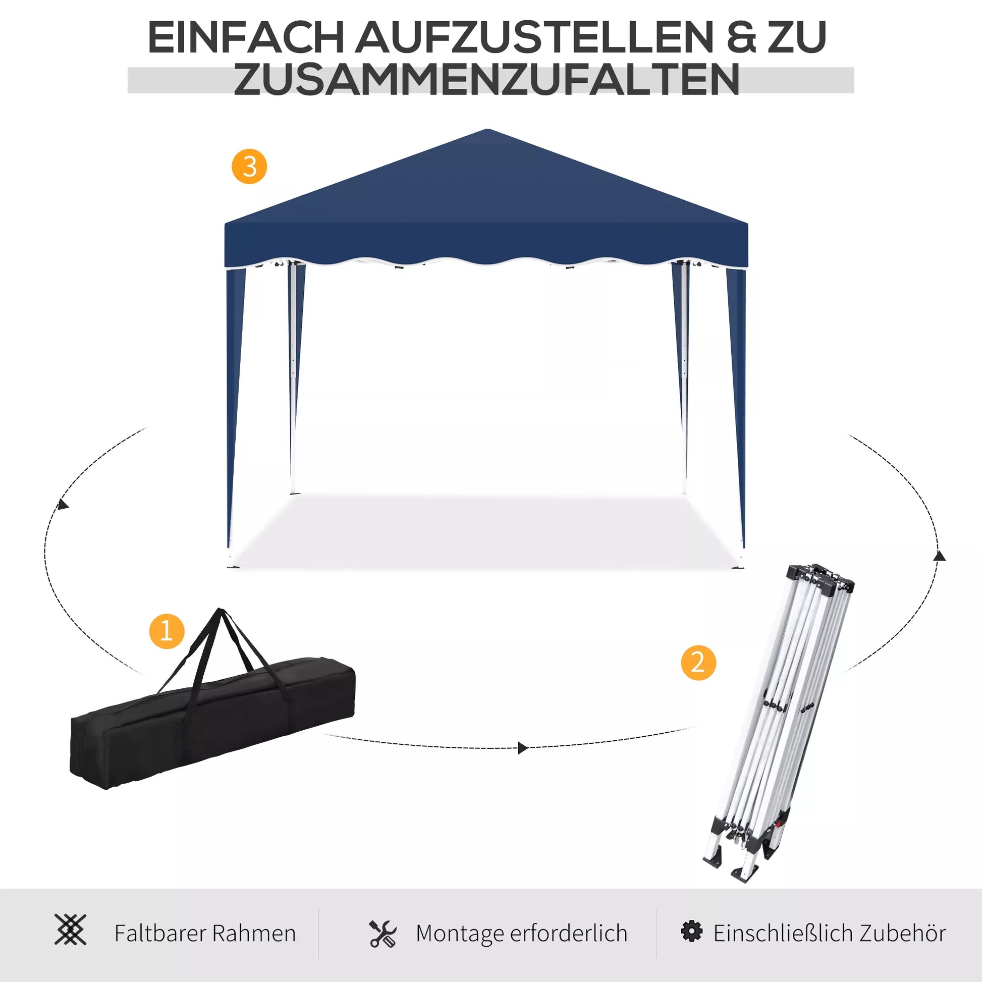 Sulankstomas paviljonas 3 x 3 m, sodo paviljonas, sulankstomas, renginių palapinė, reguliuojamo aukščio, sodo palapinė su transportavimo krepšiu, UV apsauga, plienas, Oxford Mėlyna