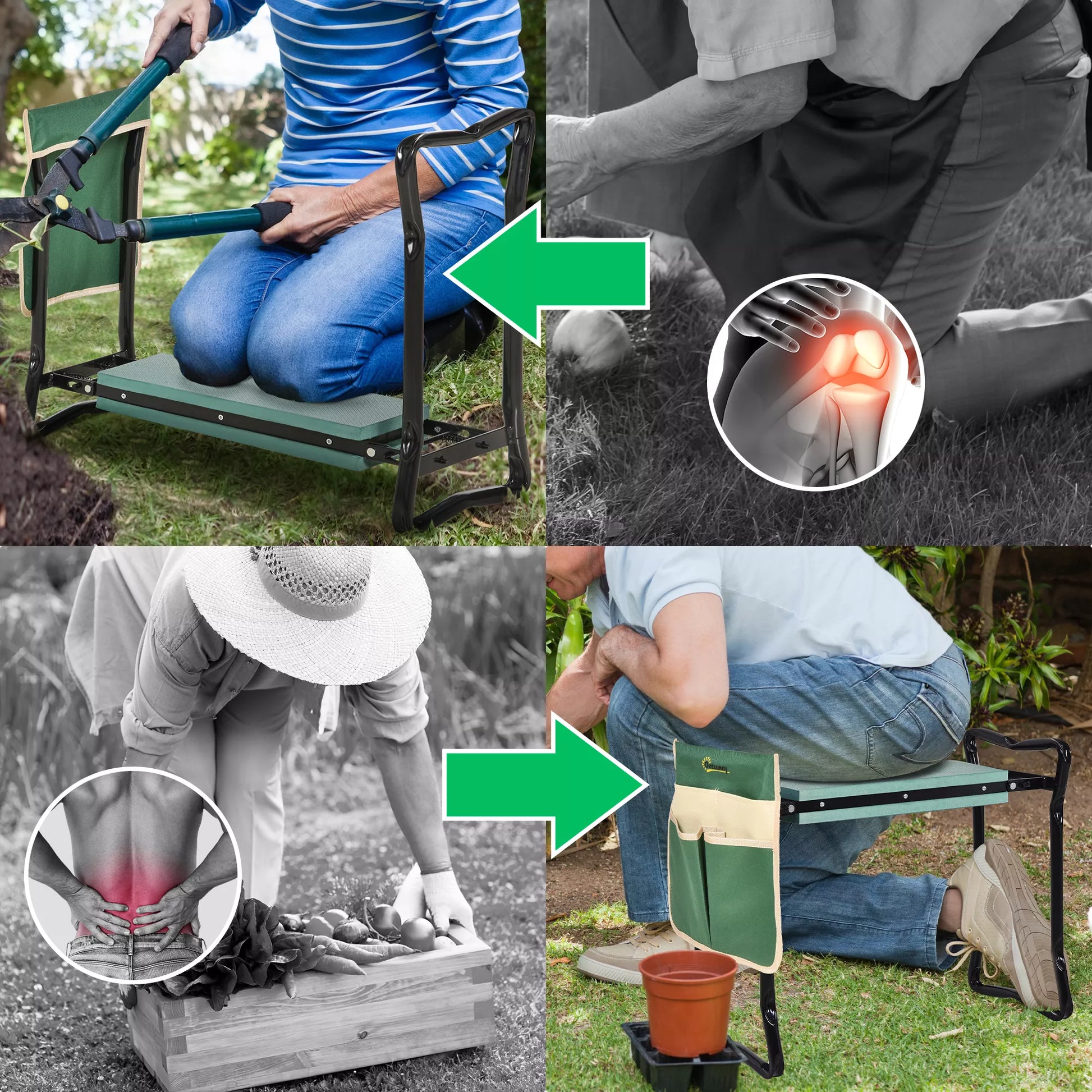 - ✔ 2-in-1 dizainas: kelių suoliukas ir sodo kėdutė