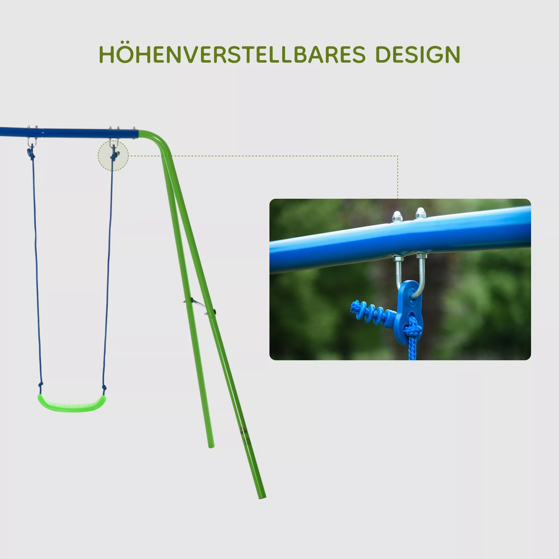 Lauko sūpynių aikštelė su 2 sūpynėmis ir balansyru, vaikiškos sūpynės su metaliniu rėmu, žalia