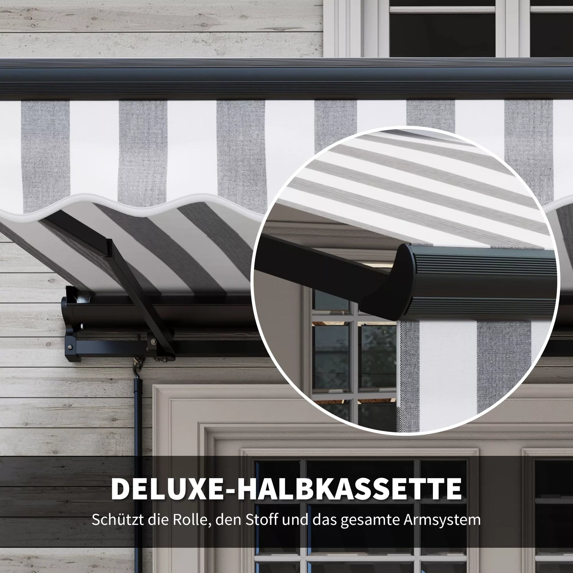 Terasos markizė, atspari oro sąlygoms, su 1 rankenėle, 395 x 250 x 150 cm, pilka + balta