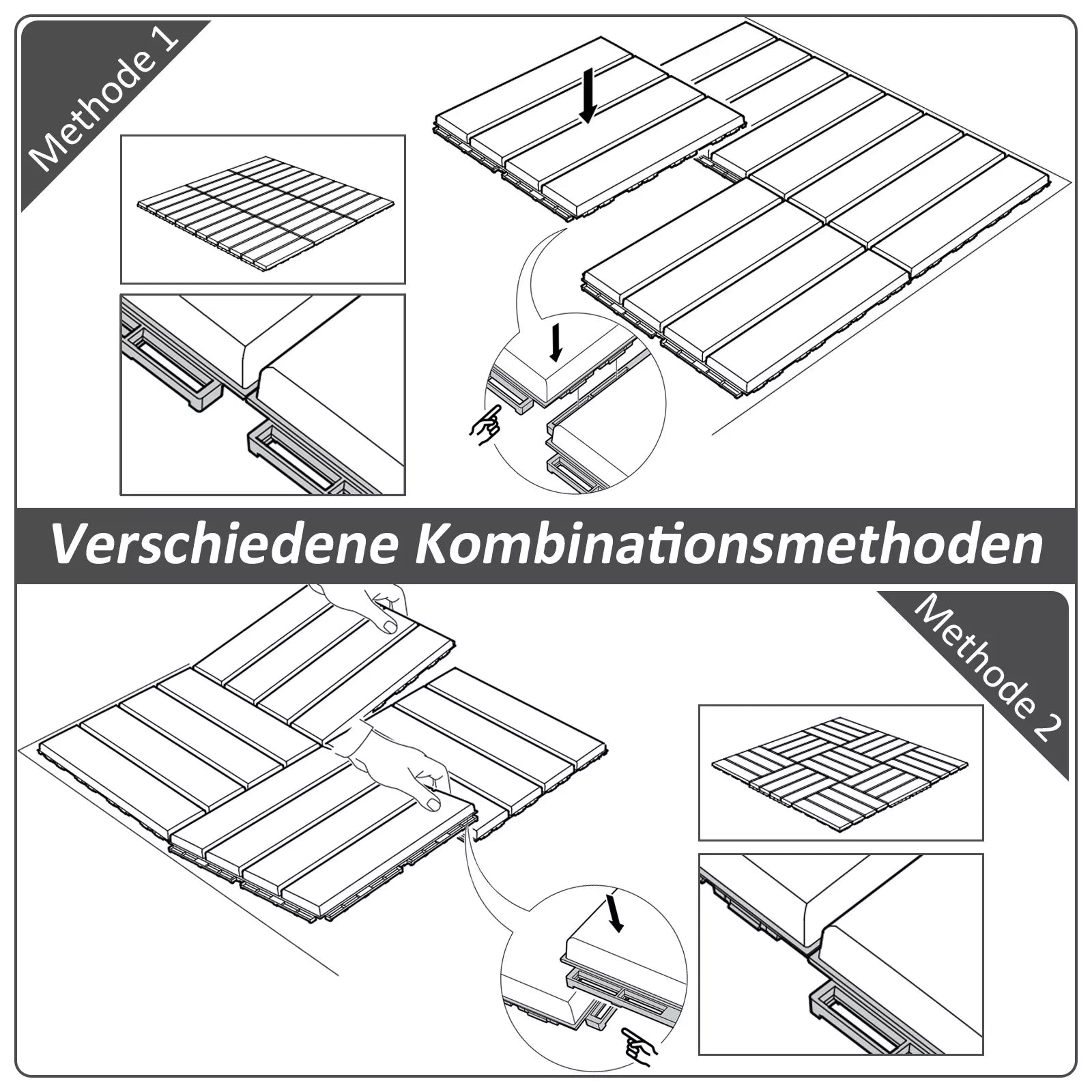 Ar norite išskirtinai gražiai atnaujinti savo balkono ar terasos grindis – vos per 10 minučių? Su šiomis dekoratyviomis ir praktiškomis grindų plytelėmis galite tai padaryti! Jos yra ekologiškos, pagamintos iš perdirbto plastiko ir itin lengvos. Naudodami modernų „click“ mechanizmą, plyteles galima patogiai ir greitai kloti, visiškai nenaudojant klijų ar varžtų. Jos yra tvirtos ir atsparios oro sąlygoms, todėl puikiai tinka nuolatiniam naudojimui lauke!