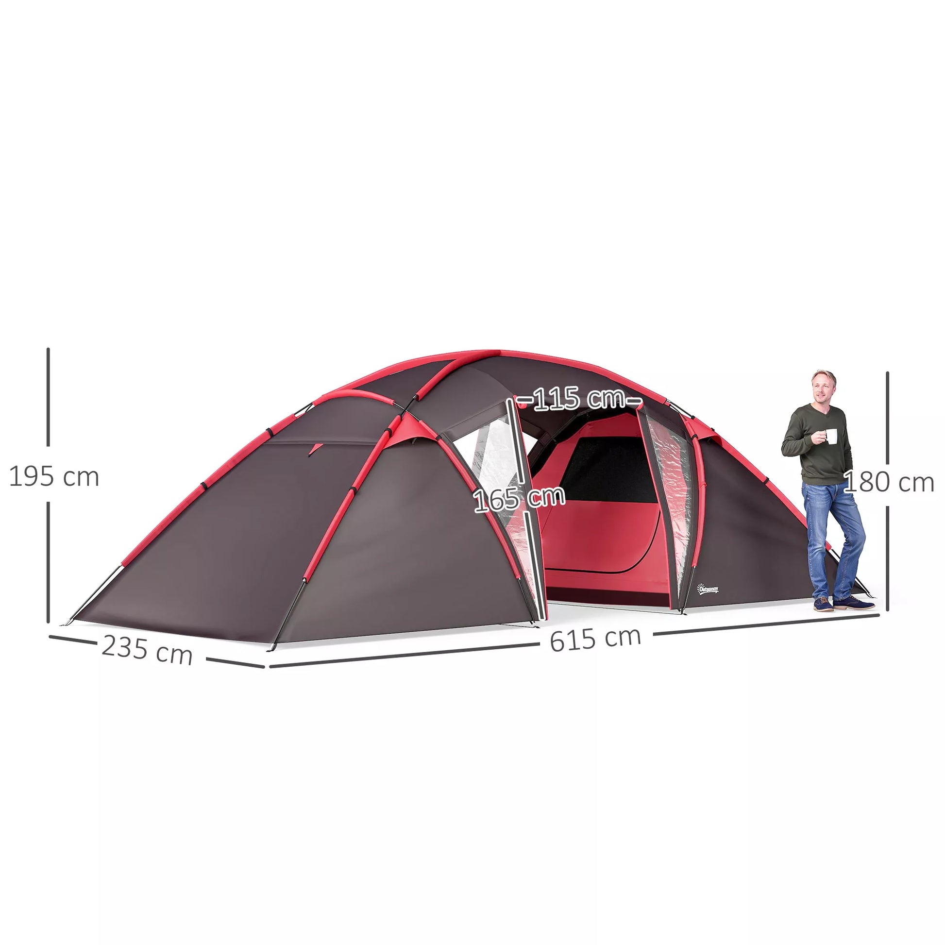 Atraskite lauko pasaulį su 6 žmonių tuneliniu palapiniu, puikiai tinkančiu stovyklauti su draugais ir šeima. Ši stovyklavimo palapinė turi du didelius miegamuosius ir svetainės zoną, talpina šešis žmones ir garantuoja jaukų laisvalaikį. Pagamintas iš 190T poliesterio su 3000 mm+ vandeniui atsparia danga, mūsų tunelinis palapinė užtikrina tvirtą apsaugą nuo vandens, o PE dugno danga palaiko vidų švarų ir sausą.
