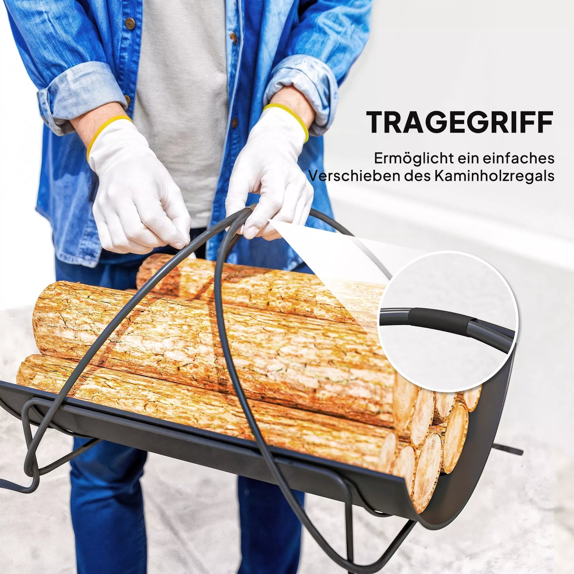 Vidinė malkų laikymo lentyna 51 x 38 x 33cm, geometrinis malkų stovas su metaline rankena, juoda