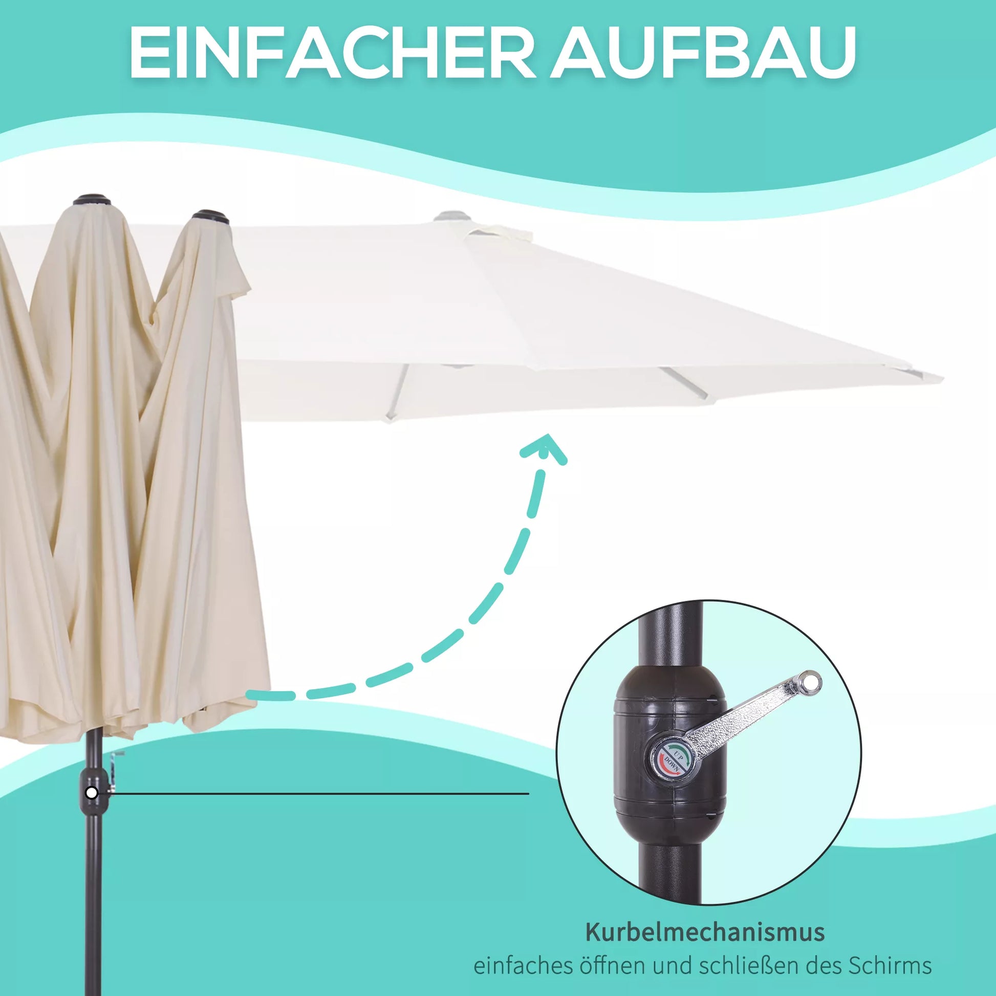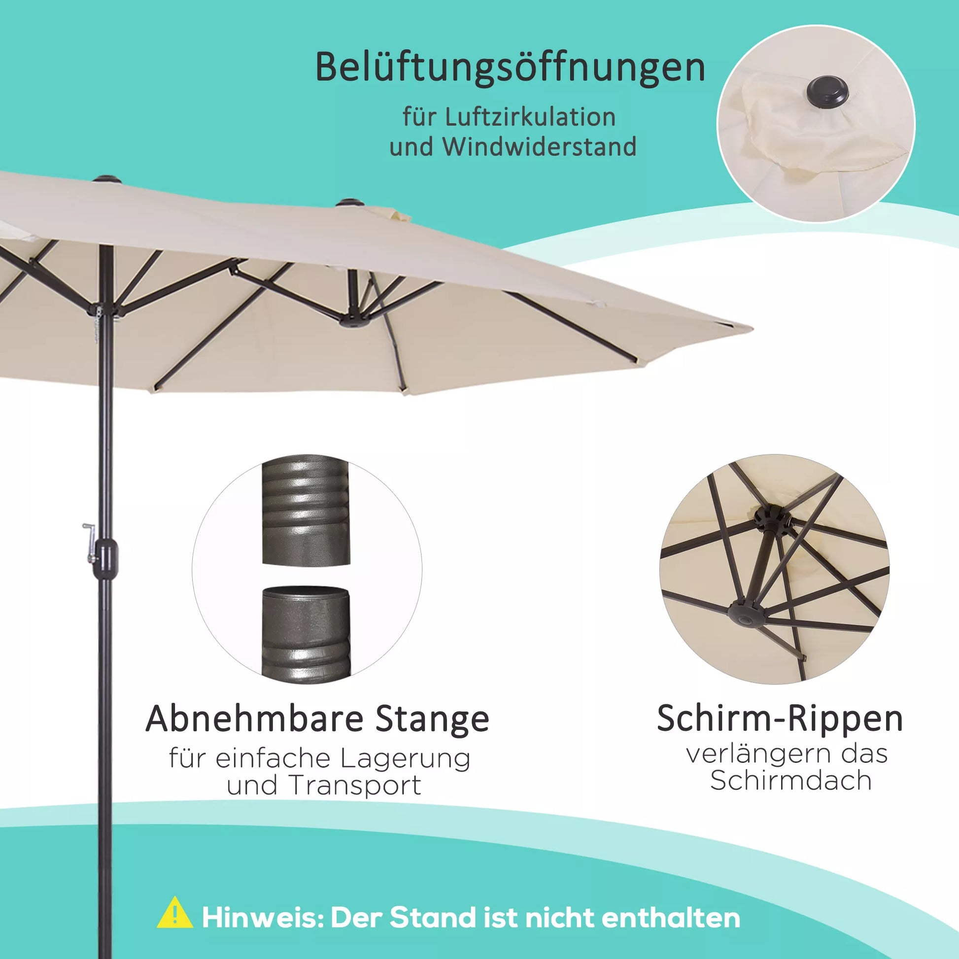 XXL skėtis nuo saulės su rankena, atsparus oro sąlygoms, 455 cm x 270 cm x 240 cm, plienas, poliesteris, smėlio spalvos