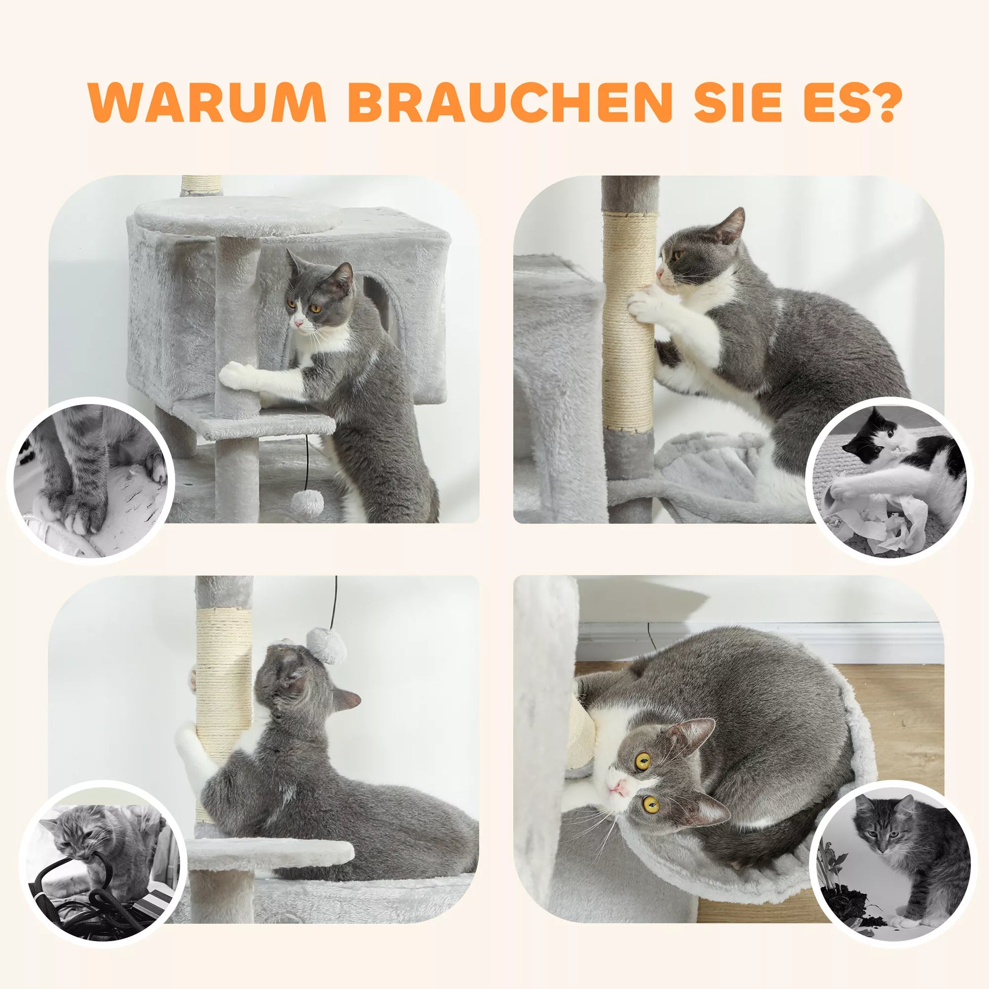 - ✔ Su sizaliu apvynioti stulpeliai patenkina draskymo poreikį ir apsaugo jūsų baldus nuo pažeidimų
