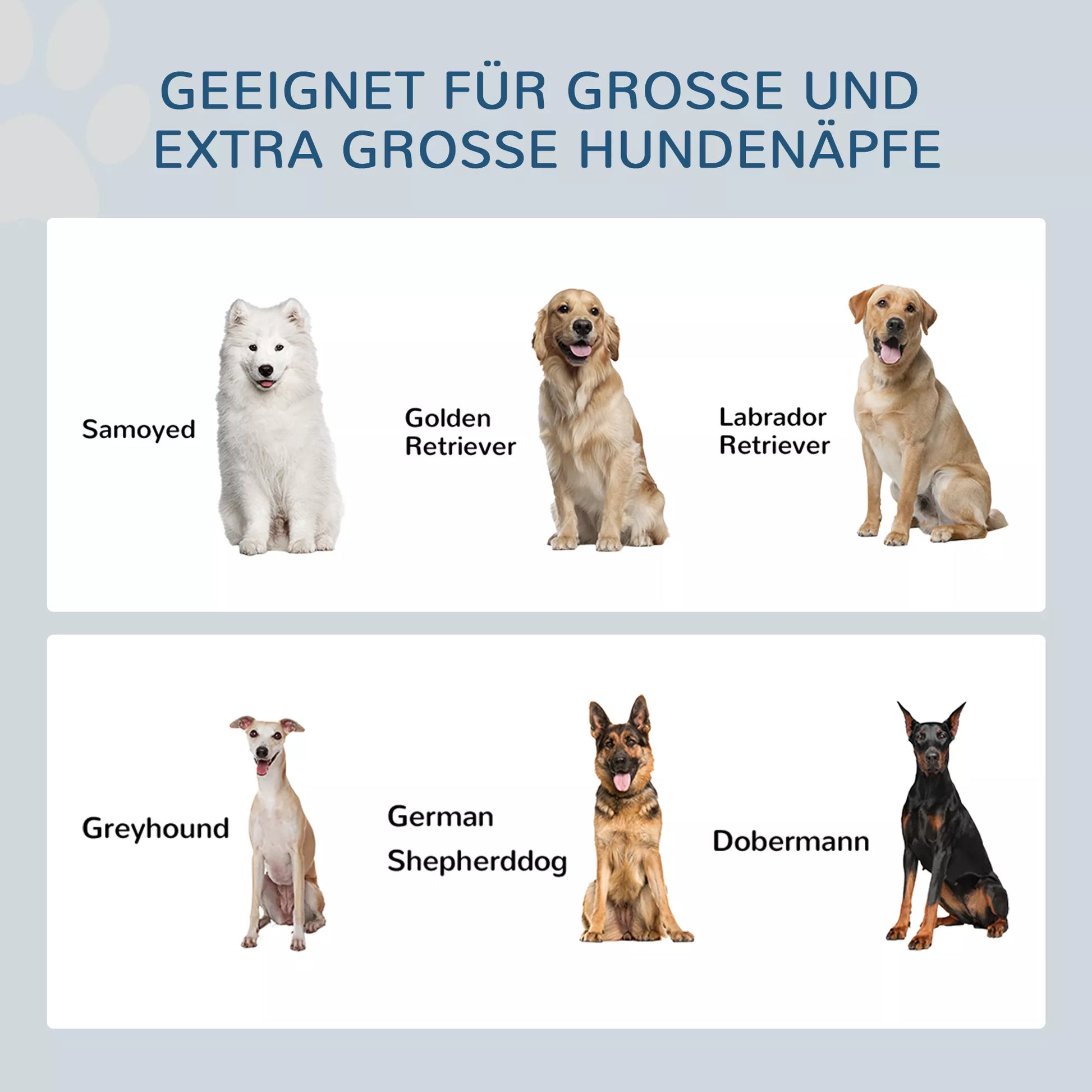 Pagerinkite savo augintinio valgymo malonumą su PawHut paaukštintais šunų dubenėliais! Sukurtas specialiai didelių šunų stuburo ir nugaros apsaugai, šis paaukštintas dubenėlis tinka dideliems šunims, kurių aukštis ties ketera yra nuo 50 iki 65 cm. Su lėto šėrimo kilimėliu ir pusiau automatiniu maisto dozatoriumi, kad maistą ruošti būtų lengva. Be to, paaukštintas šunų šėrimo dubenėlis siūlo paslėptą sandėliavimo vietą visoms augintinio reikmėms.