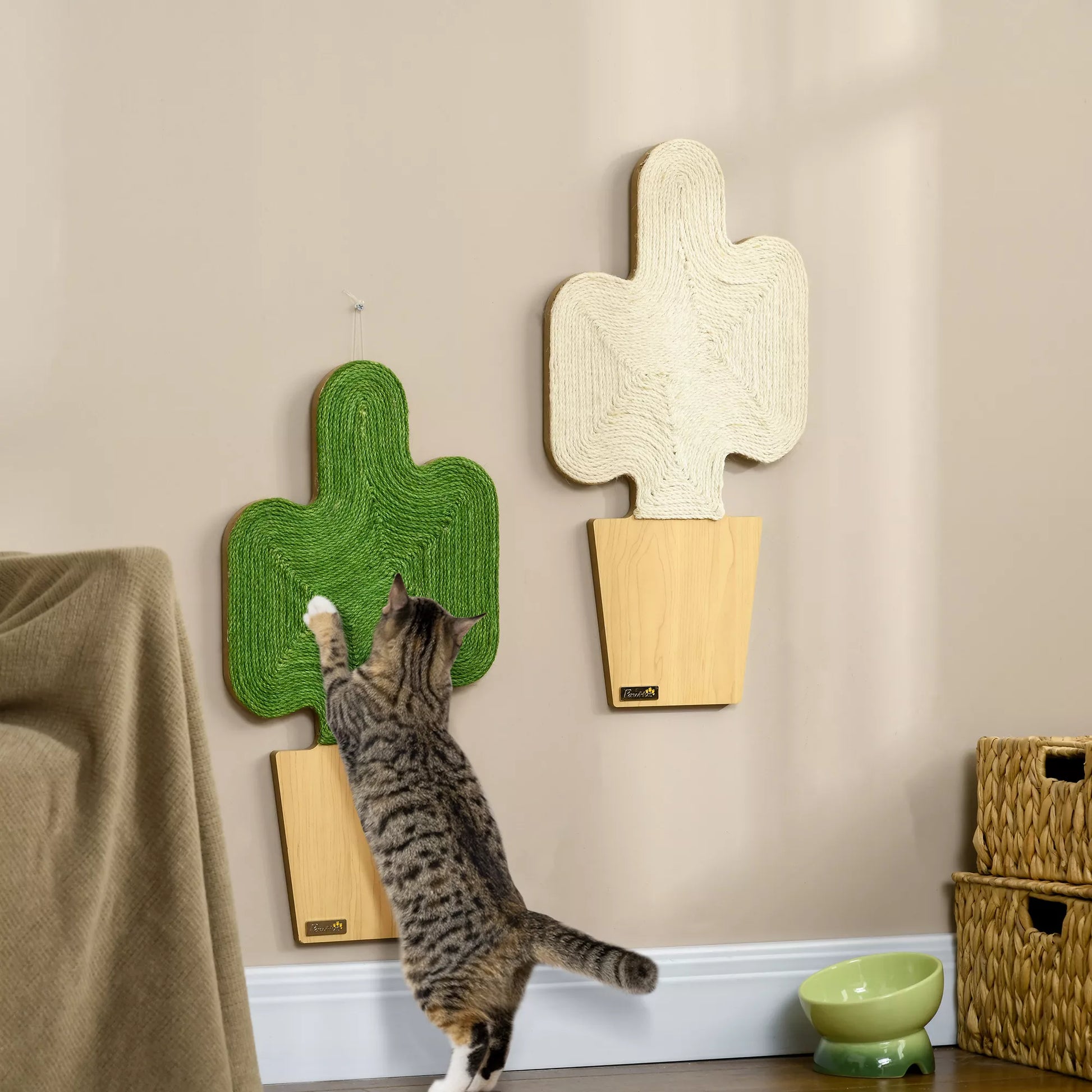 2 vnt. rinkinys katės draskyklių, kaktuso dizaino, tvirtinamos prie sienos, 30 cm x 60 cm, ąžuolo+balta+žalia
