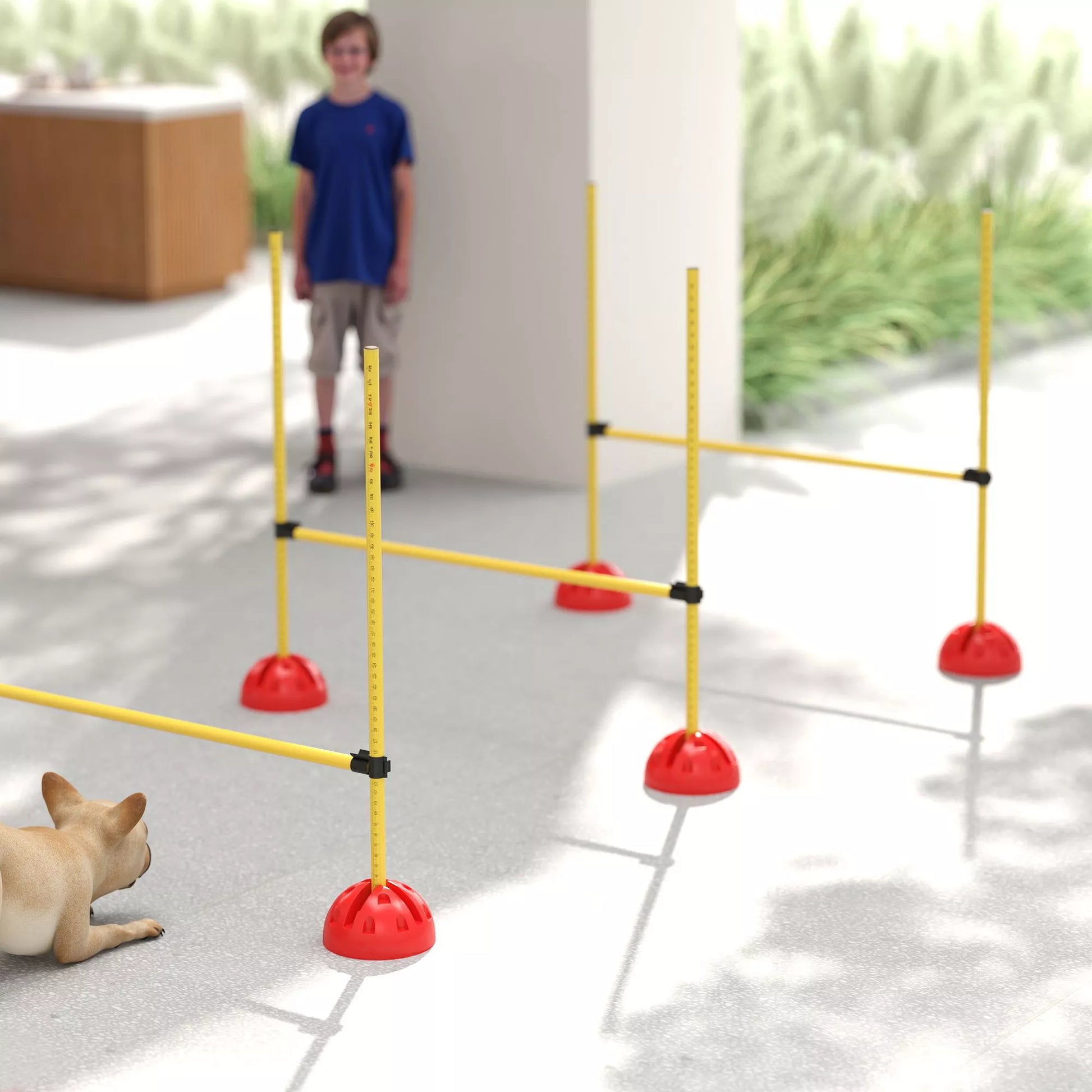 - ✔ Pažymėtos agility rinkinio strypų skalės leidžia lengvai reguliuoti aukštį