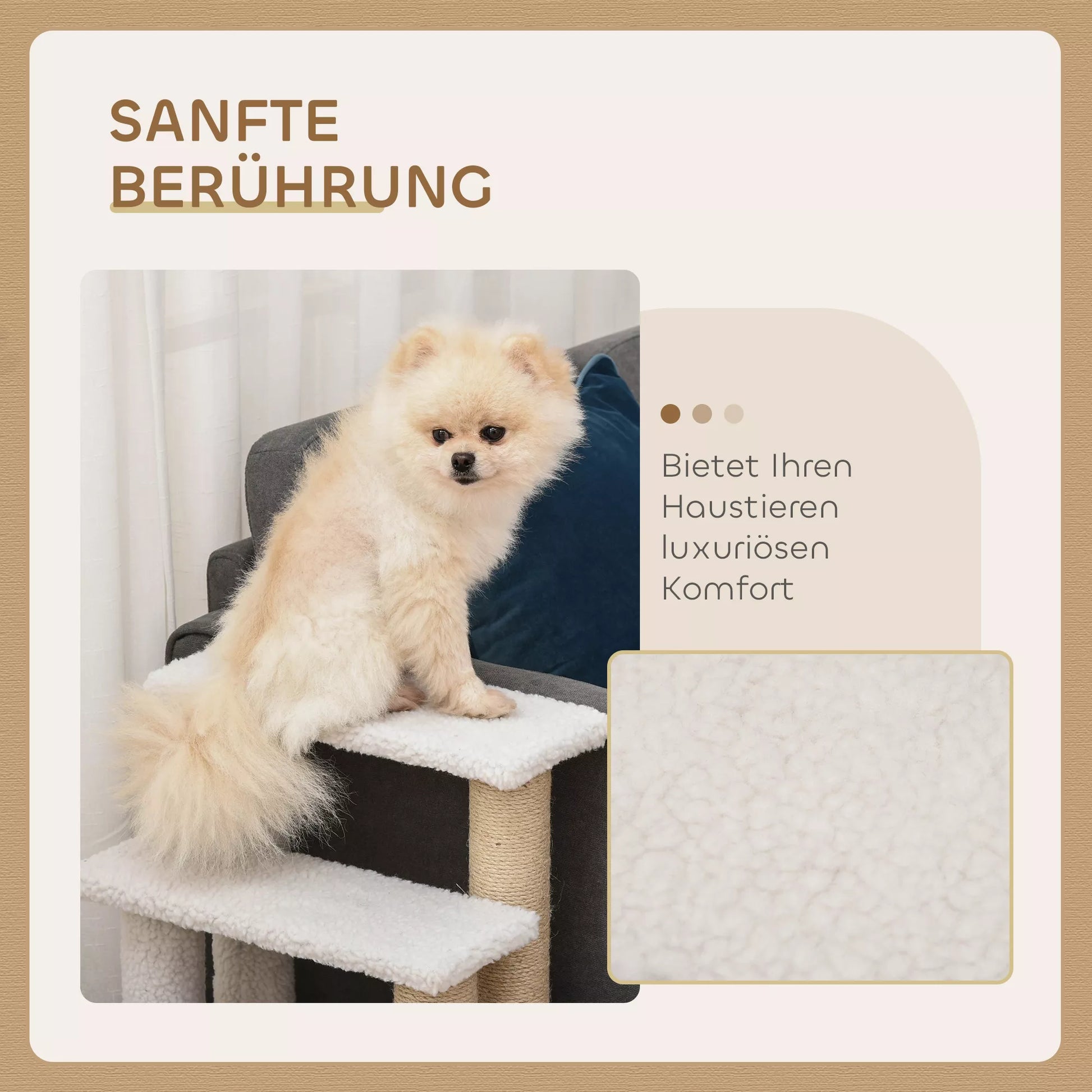 Katės laipteliai 4 pakopų augintinių laipteliai su draskyklėmis rutulys šunų laipteliai gyvūnų laipteliai katėms iki 5 kg pliušas džiutas baltas 60 x 40 x 64 cm