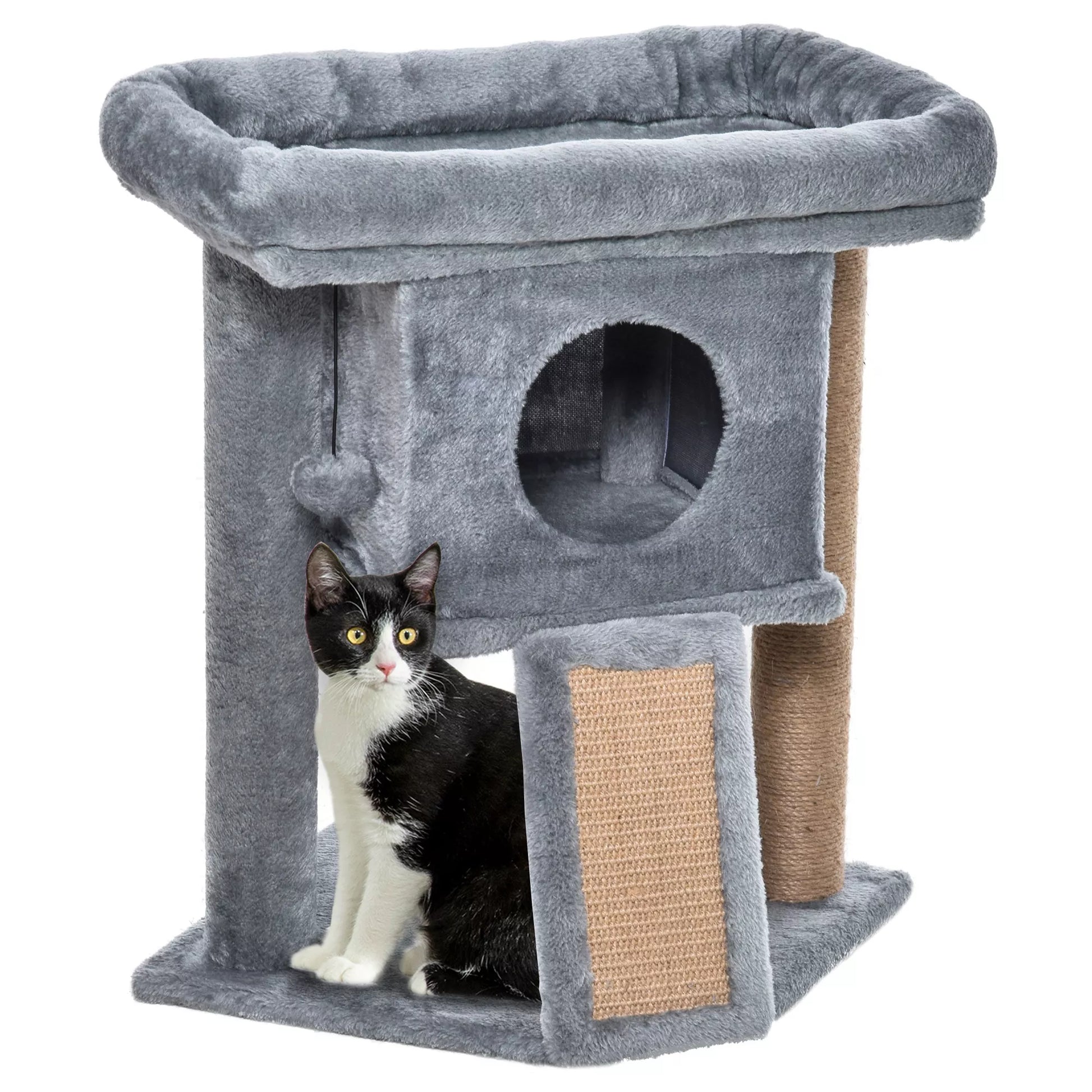 Šis namelis katėms nuo . yra draskyklė, žaidimų ir miego vieta viename. Jūrinis draskomasis kilimėlis, miego vieta, namelis ir žaisliukas suteiks daug pramogų. Dėl trijų lygių jūsų augintinis galės laipioti, šokinėti ir žaisti kiek širdis geidžia. O kai norėsis nusnūsti, minkšta platforma ant stogo puikiai tiks kaip guolis. Padovanokite savo katei smagius ir jaukius naujus namus su šia universalia draskykle nuo .