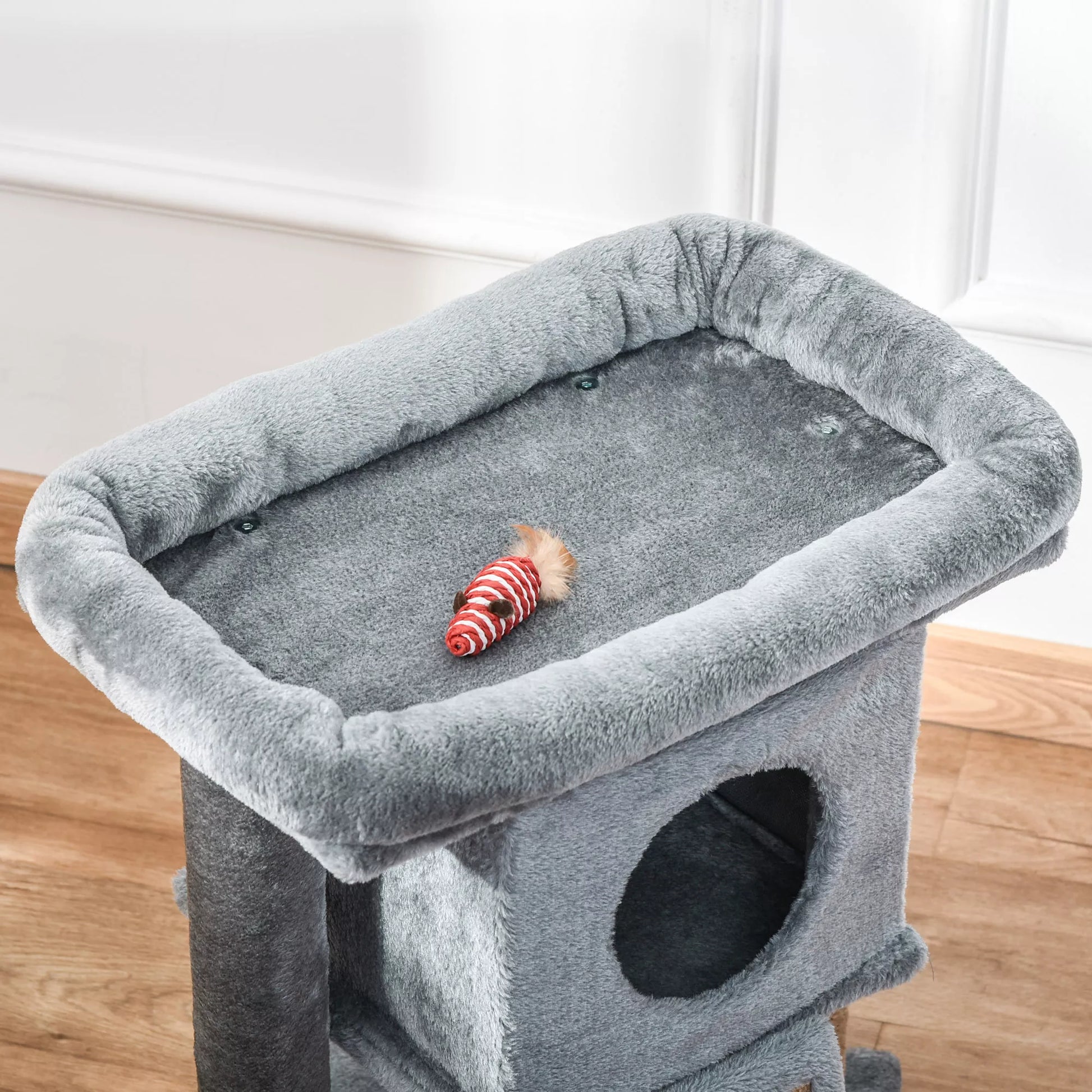 Kačių medis 57 cm. Mažas kačių medis su kačių guoliu, miego platforma, kačių draskyklė su draskomąja lenta, žaidimo kamuoliuku, baldas katėms iki 5 kg. Šviesiai pilkas