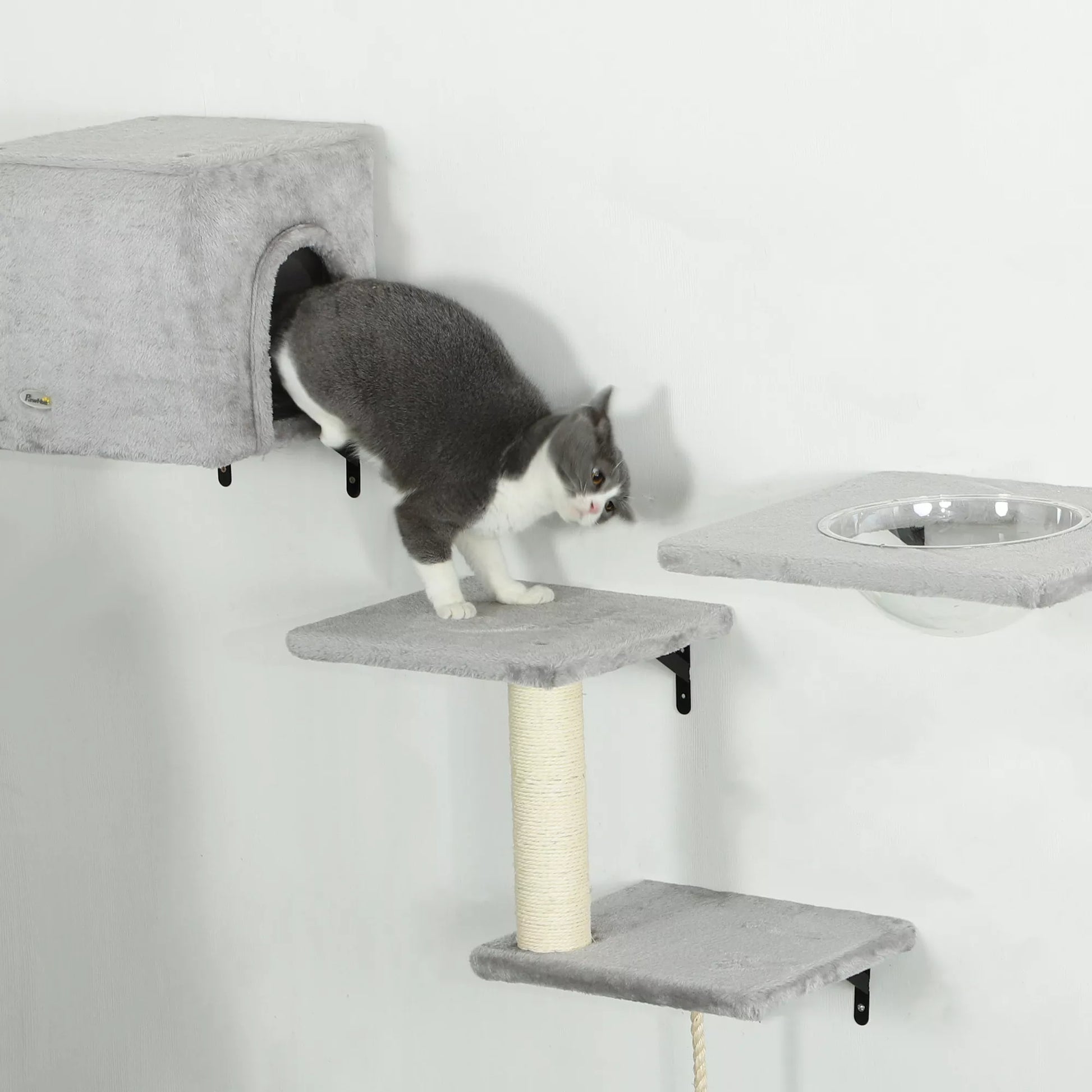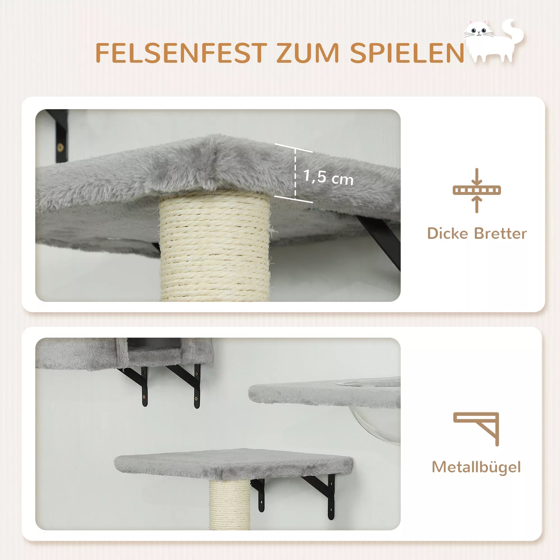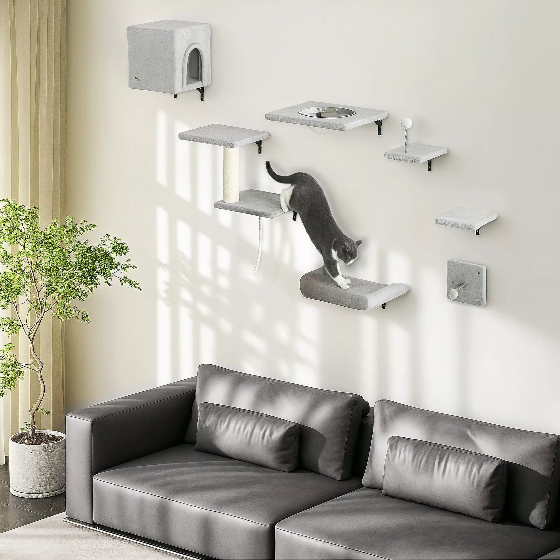 7 dalių kačių laipiojimo sienelės komplektas su kačių nameliu, platformomis (pilka)