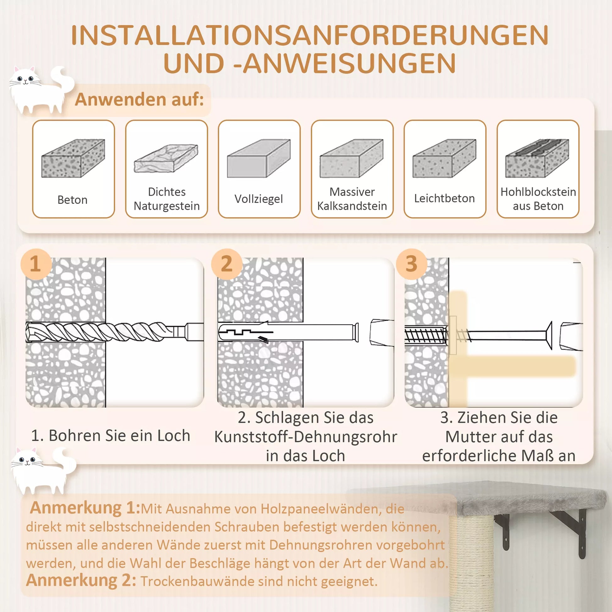Atnaujinkite savo pūkuotojo draugo žaidimo laiką su kačių laipiojimo sienelių rinkiniu! Šis sieninis kačių laipiojimo laiptelių rinkinys apima septynias dalis: daugiasluoksnes platformas, jaukią sieninę katės lovelę ir įdomų draskyklę. Pagamintas iš stambių lentų ir tvirtų metalinių laikiklių, šis sieninis draskyklė suteikia saugią laipiojimo sienelę katėms, kuri ne tik taupo vietą, bet ir garantuoja begalinį linksmumą bei jaukumą.