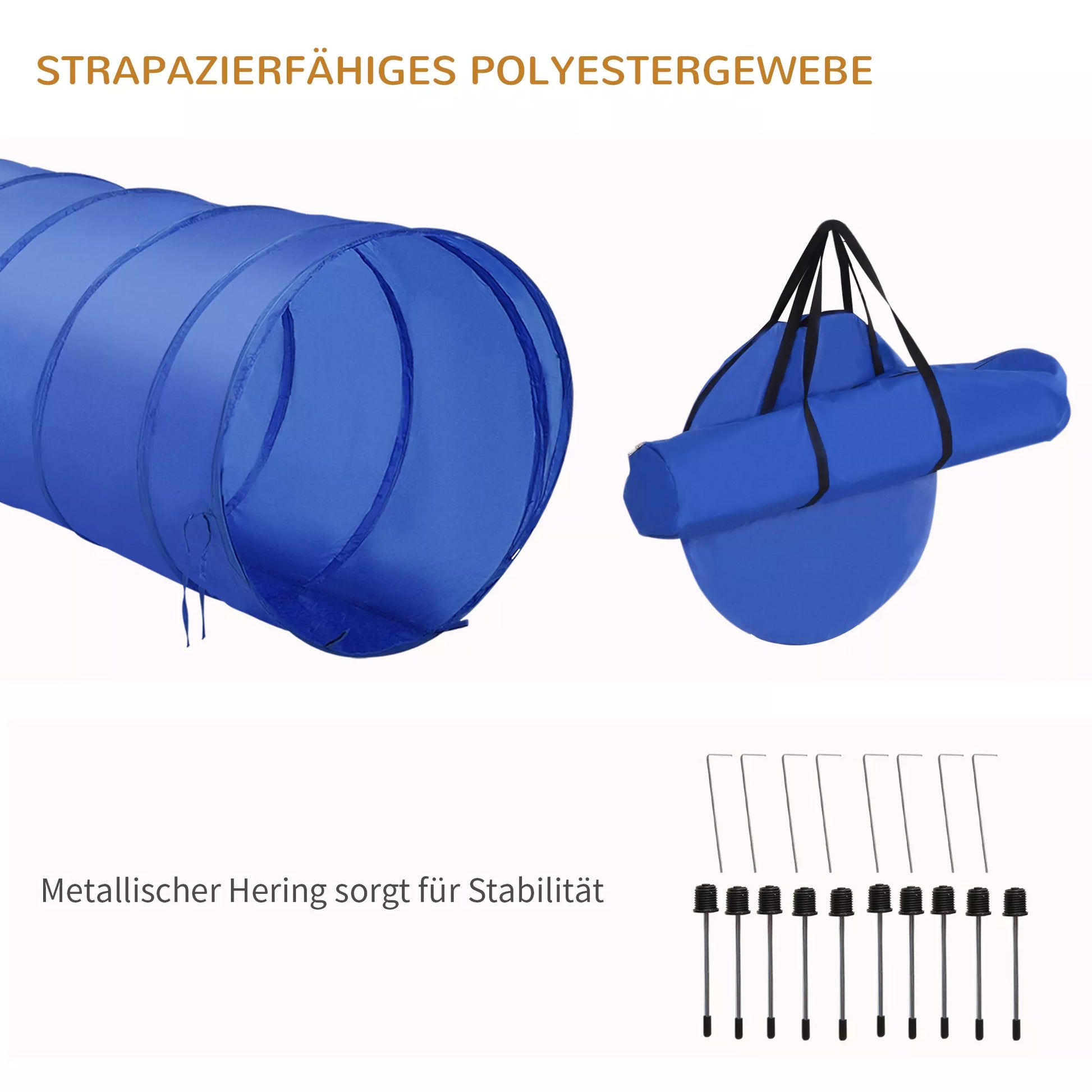 Agility treniruočių rinkinys: Slalomas, kliūtys, tunelis, šunų sportas, treniruočių aikštelė. PE+Poliesteris. Mėlyna+Geltona.