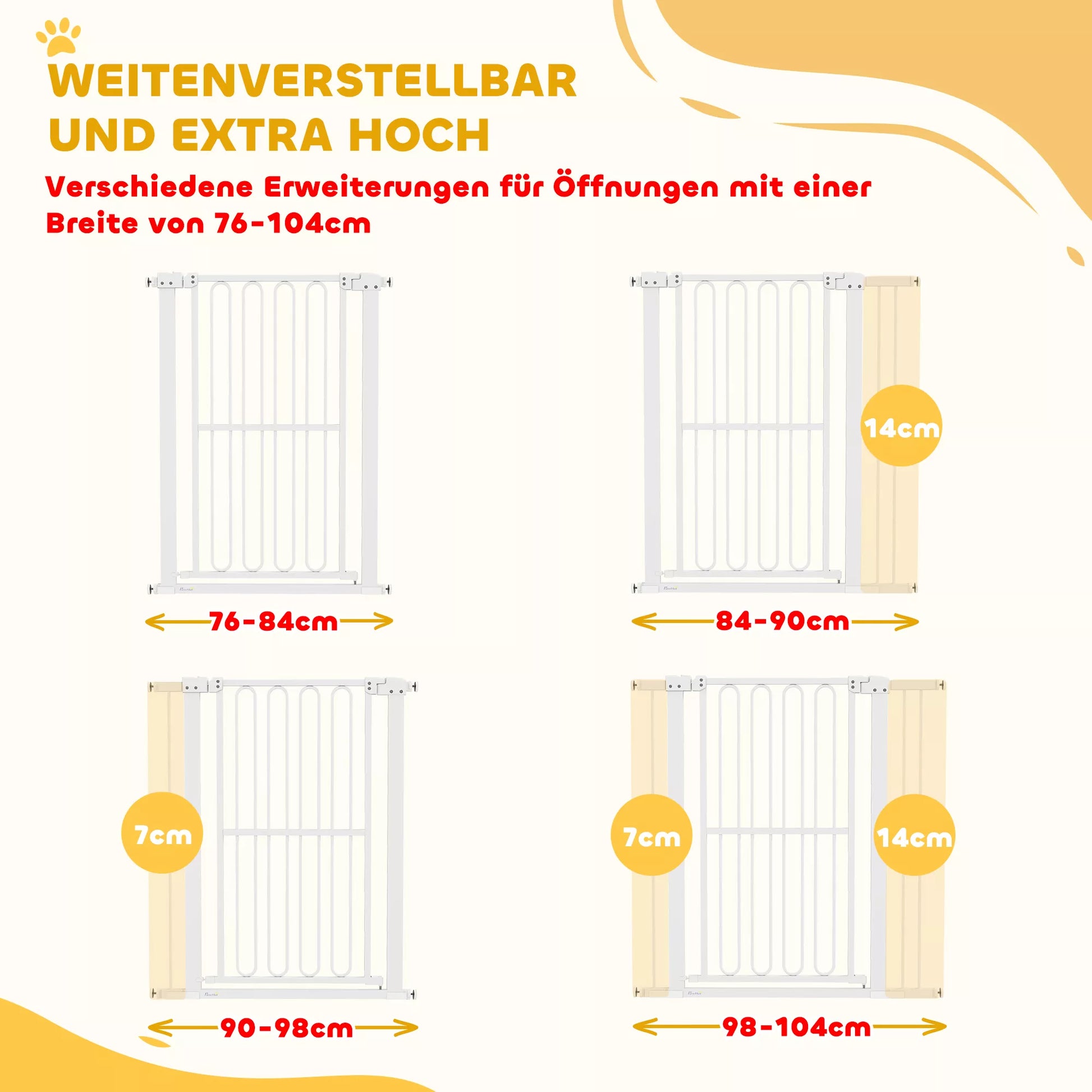 Apsaugokite savo keturkojį augintinį ir optimizuokite savo namus su šiais varteliais be gręžimo. Reguliuojamas nuo 76 iki 104 cm, šie laiptų varteliai idealiai tinka laiptams, koridoriams ir durims. Dviguba fiksavimo sistema užtikrina paprastą atidarymą viena ranka ir saugumą, nes durys atsidaro į abi puses. Tinka mažiems ir dideliems šunims, puikiai dera prie jūsų interjero.