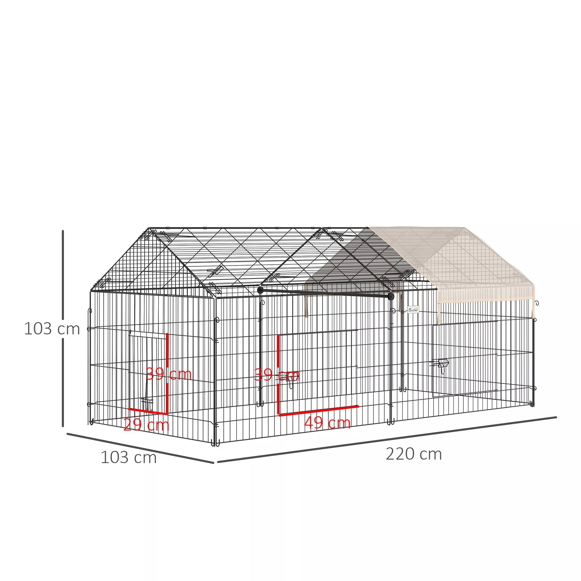 Tvora mažiesiems gyvūnams, lauko aptvaras, 4 žemės smeigės, 220 cm x 103 cm x 103 cm, juoda + smėlio spalvos