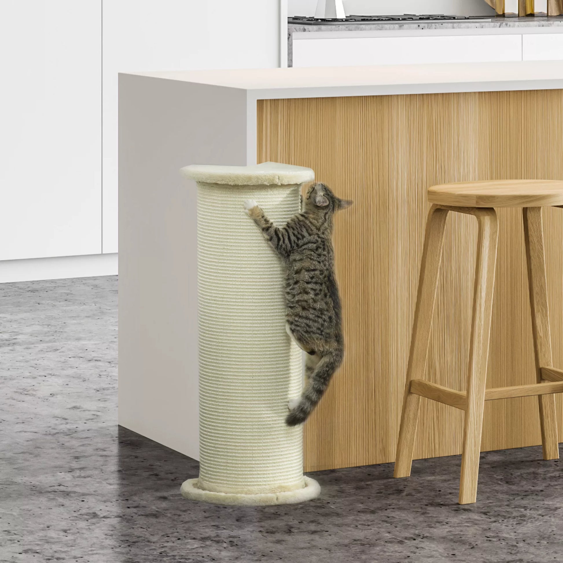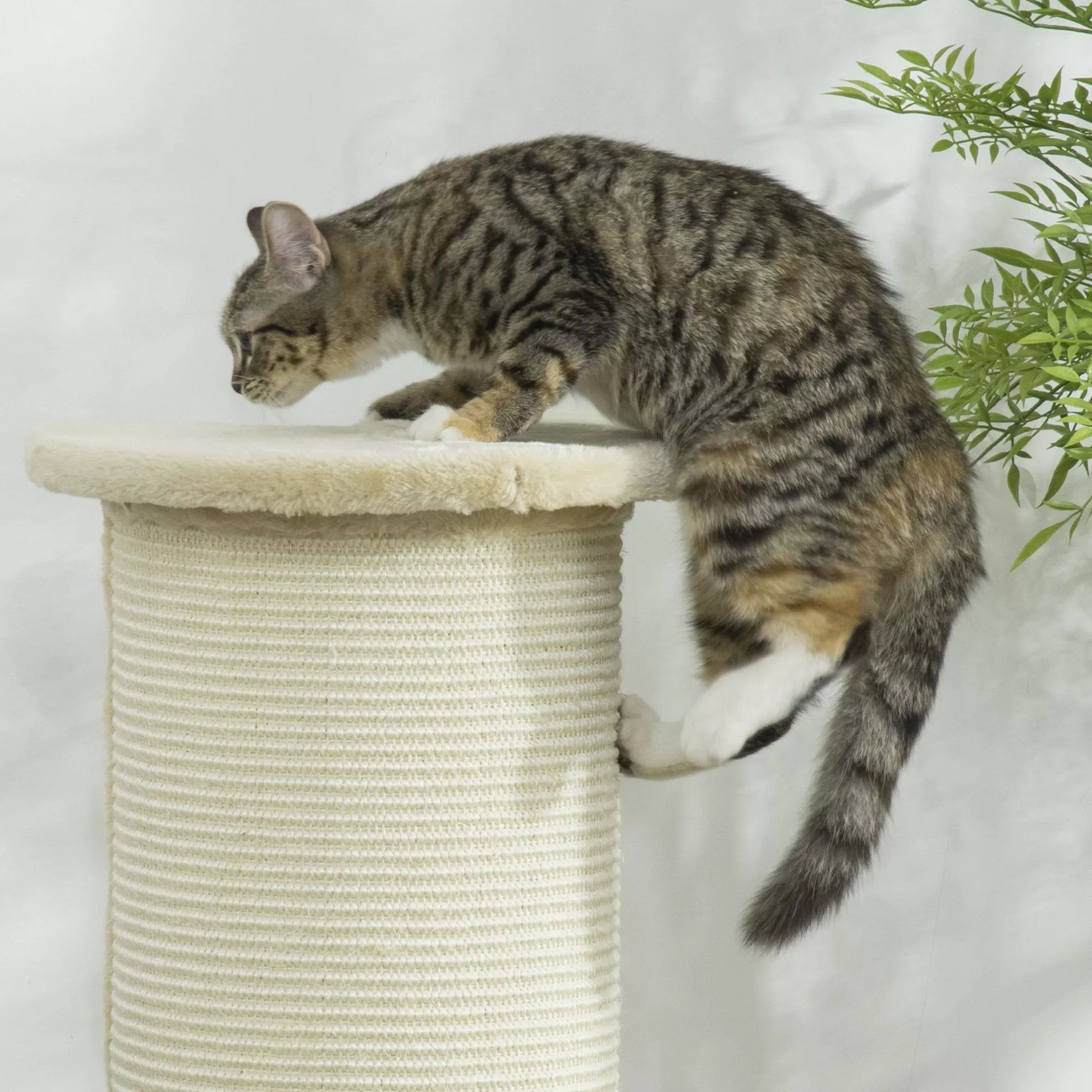 Katės draskyklė, kampinis dizainas, taupanti vietą, 35 cm x 35 cm x 85 cm, kreminė balta