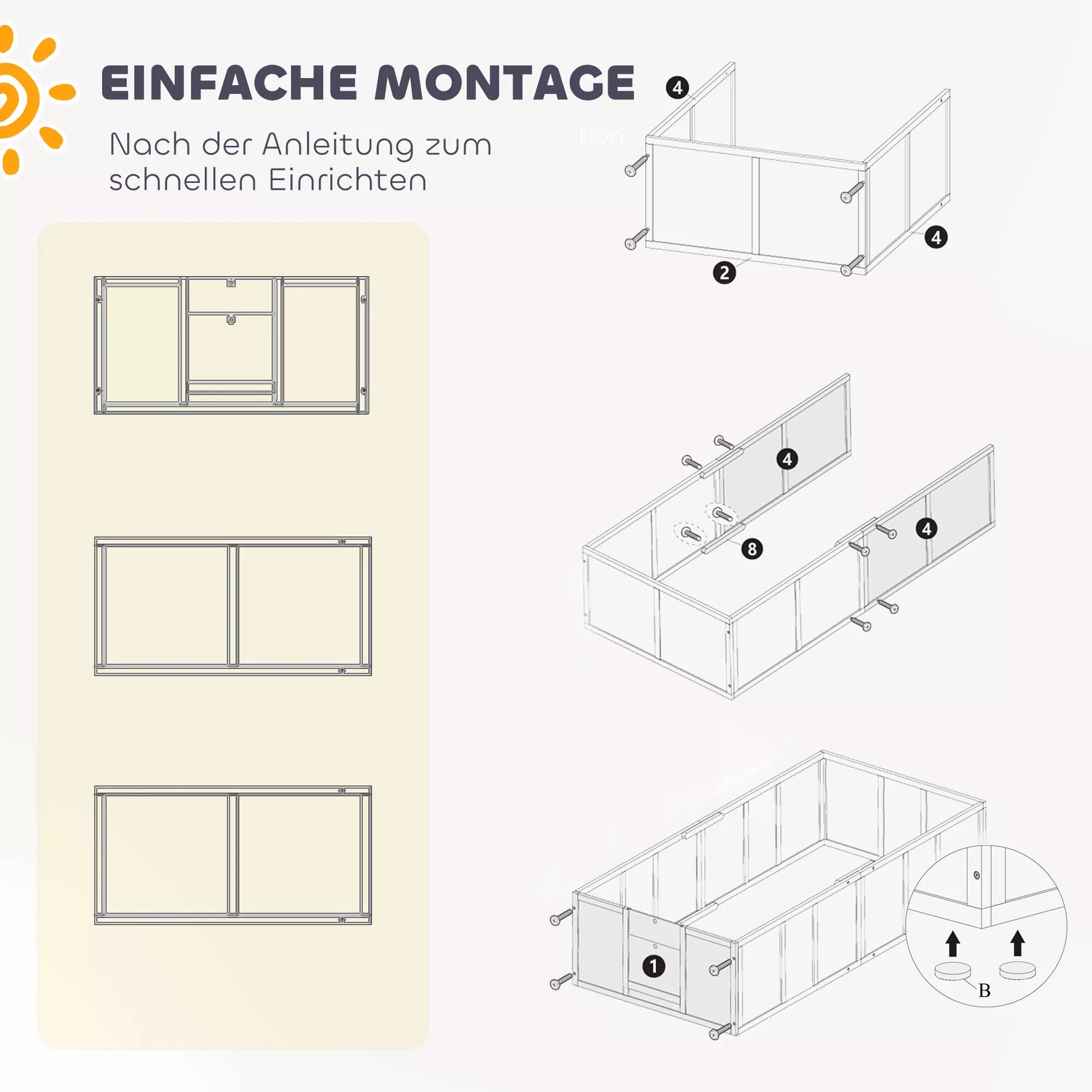 Atraskite komfortą ir patogumą savo keturkojui su šia šuniukų veisimo dėže. Šis šunų aptvaras turi reguliuojamą įėjimo aukštį ir du nuimamus skydelius, idealiai tinkantis saugiai aplinkai motinai ir jos šuniukams. Pagaminta iš pušies medienos ir MDF, ji suteikia vėjui atsparų prieglobstį naujagimiams šuniukams ir yra su neslystančiomis kojelėmis, užtikrinančiomis stabilumą. Tinka tiek dideliems, tiek mažiems šunims!