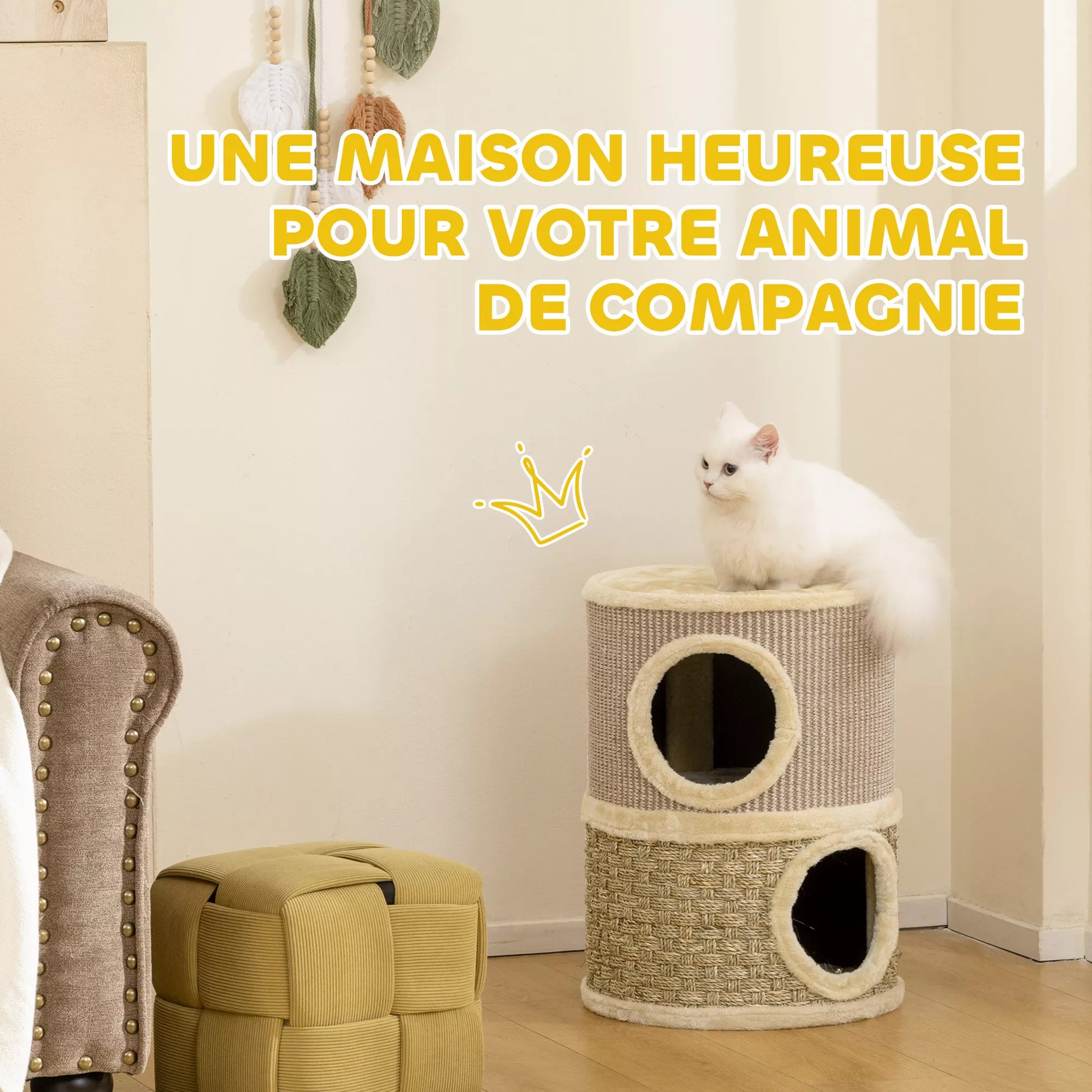 Ši katės namelis, padengtas sizalio ir dumblių virvėmis, tikrai taps nauja Jūsų katės mėgstamiausia vieta. Jis suteikia puikią vietą žaisti, miegoti ir slėptis. Viršutinis šio namelio sluoksnis yra padengtas minkšta ir malonia medžiaga, užtikrinančia puikų komfortą ilsintis.