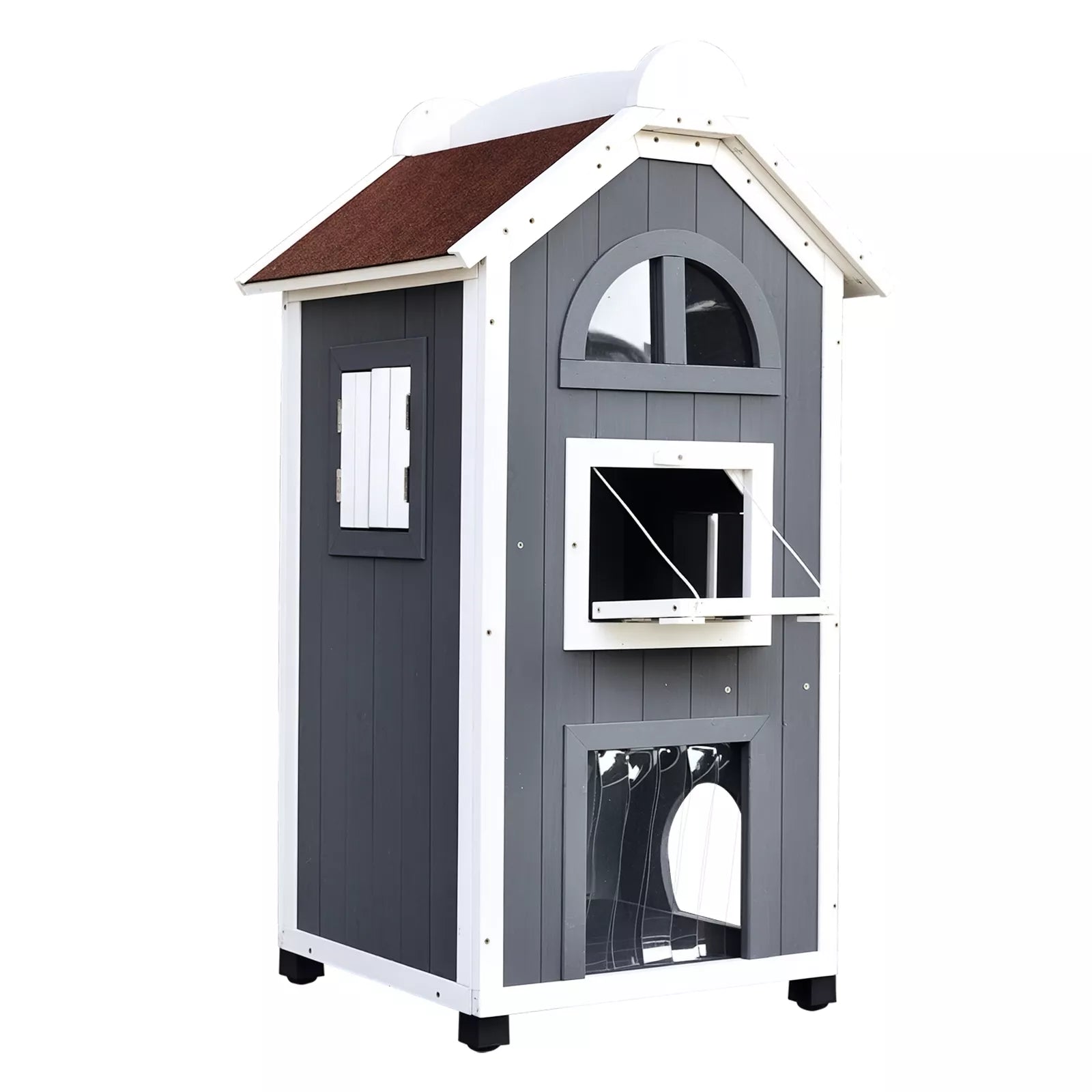 Daugiapakopis kačių namelis palieka jokių nepatenkintų pageidavimų: čia jūsų augintiniai gali žaisti, ilsėtis ir stebėti. Keli įėjimai, langas ir balkonas suteikia jiems gerus apžvalgos taškus, o viduje esanti hamakas kviečia miegoti. Kačių namelis pagamintas iš tvirto pušies medienos, padengtas asfalto danga ir atspariu oro sąlygoms dažymu. Taip jūsų augintiniai bus apsaugoti nuo oro poveikio net sode. Pasirūpinkite savo mažaisiais tigrais!