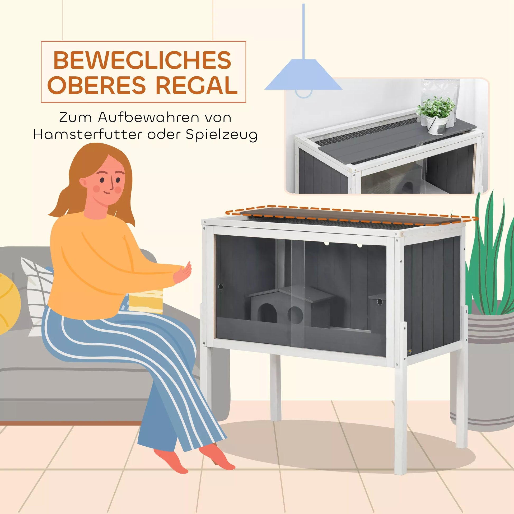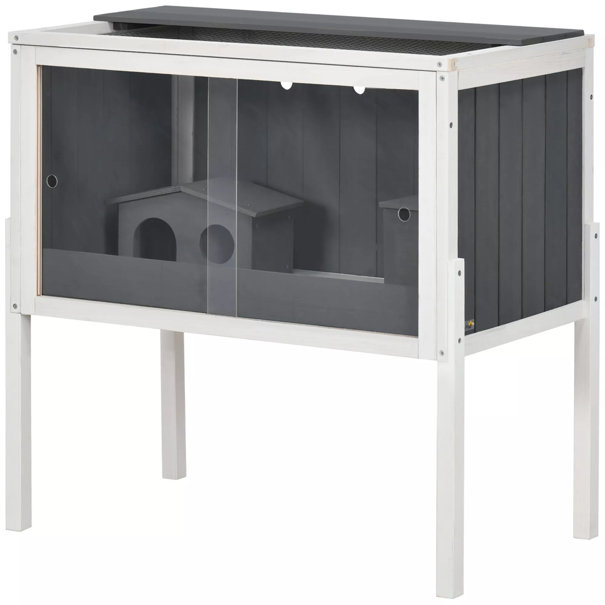 Hamsterio narvas, 3000 cm² nykštukinių žiurkėnų narvas iš medžio ir metalo, su 2 nameliais, akrilo stumdomomis durimis, stabilus, saugus, Pilka+Balta