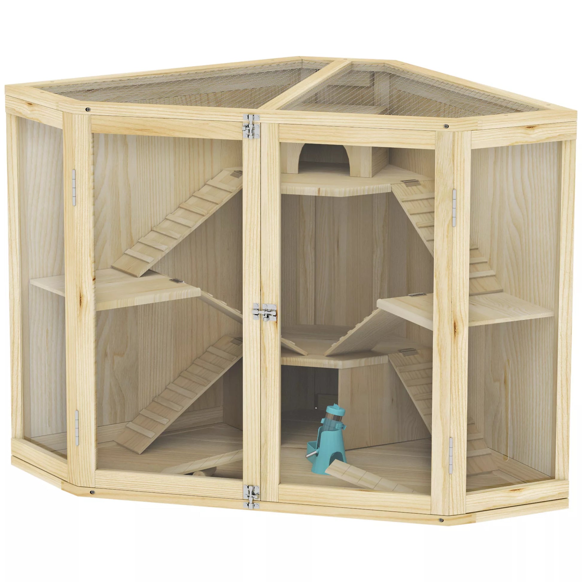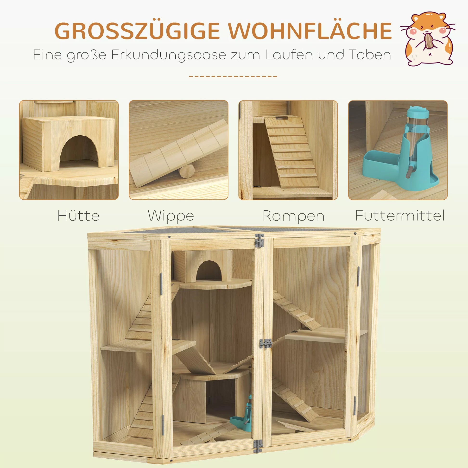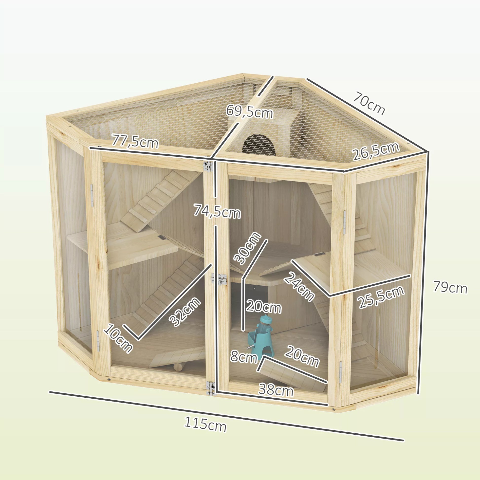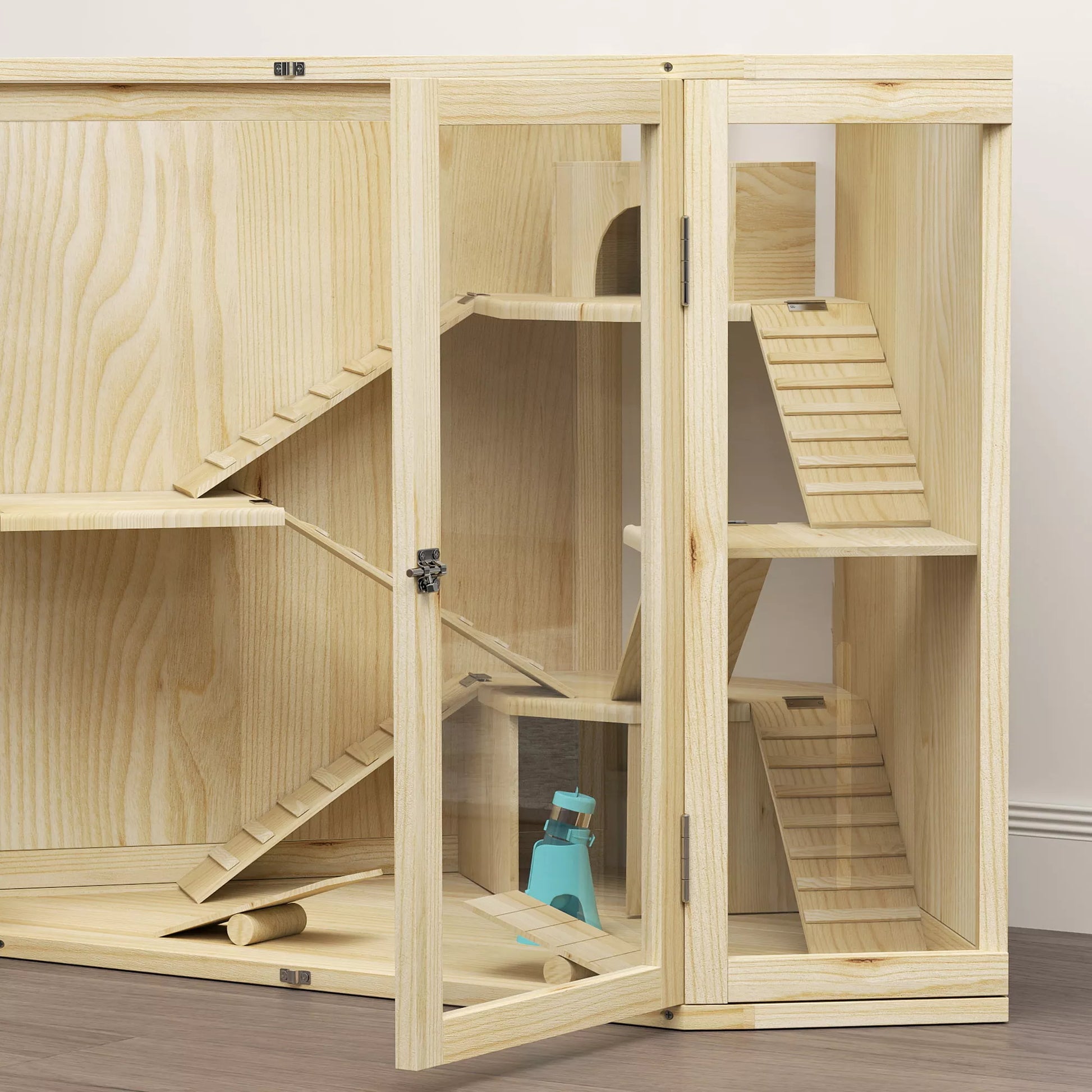 Hamsterio narvas, 4 lygių dizainas, su šėrimo stotele, sūpynėmis, rampos, nameliais, 115 x 69,5 x 79 cm, medinis
