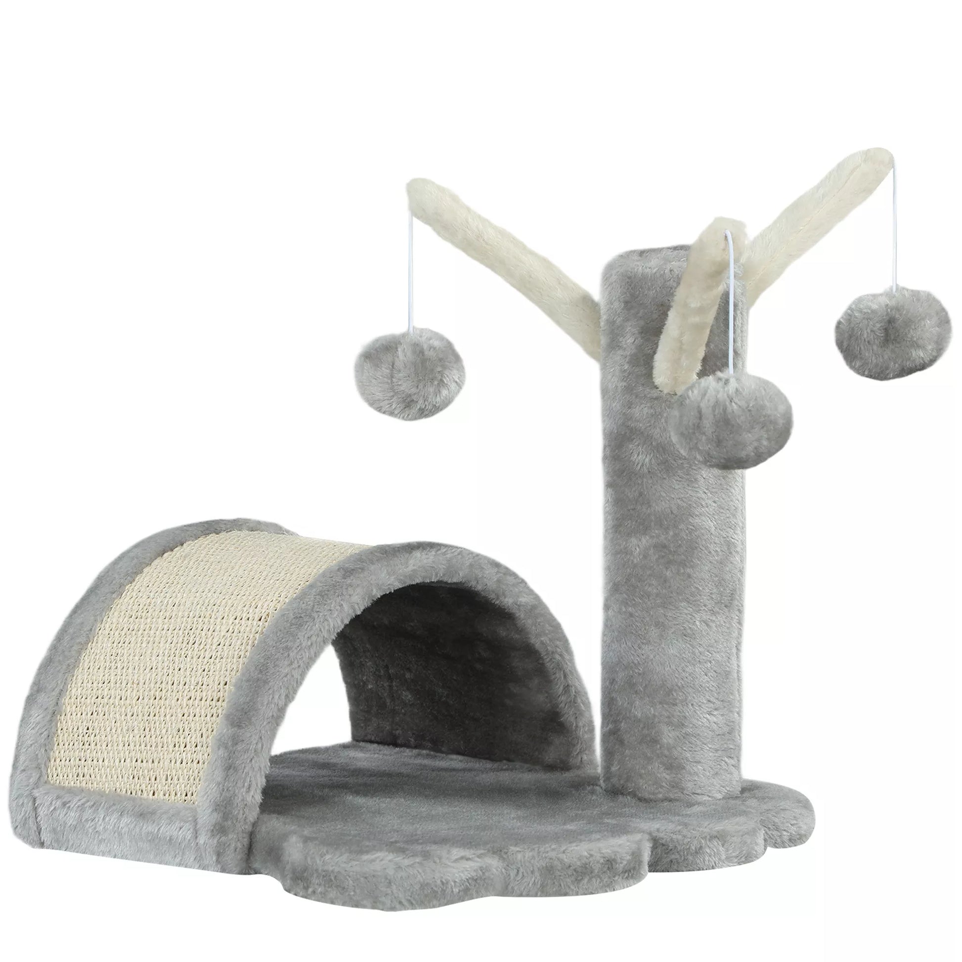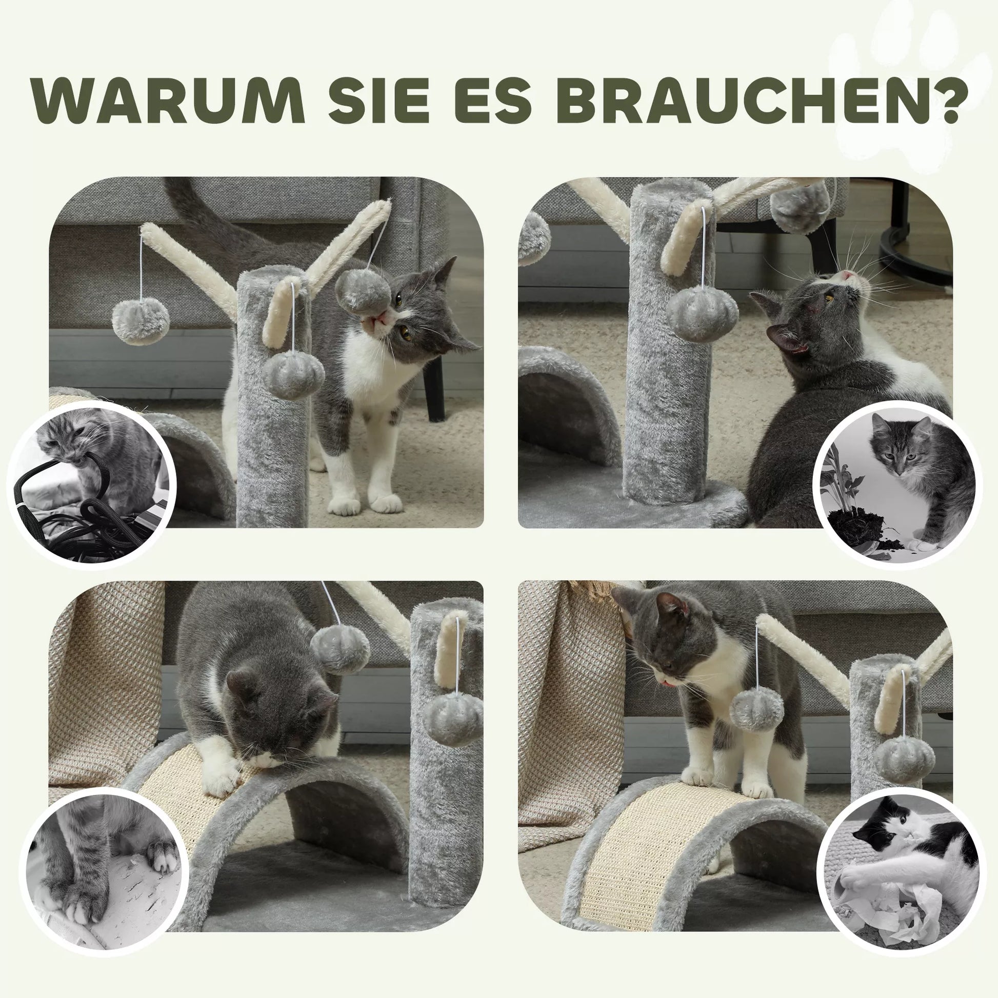 Kačių draskyklė 40 cm Mažas kačių bokštelis su guoliu, 2 žaisliniais kamuoliukais, draskomuoju kilimėliu, kačių laipiojimo medis, mažoms ir didelėms katėms, šviesiai pilkas
