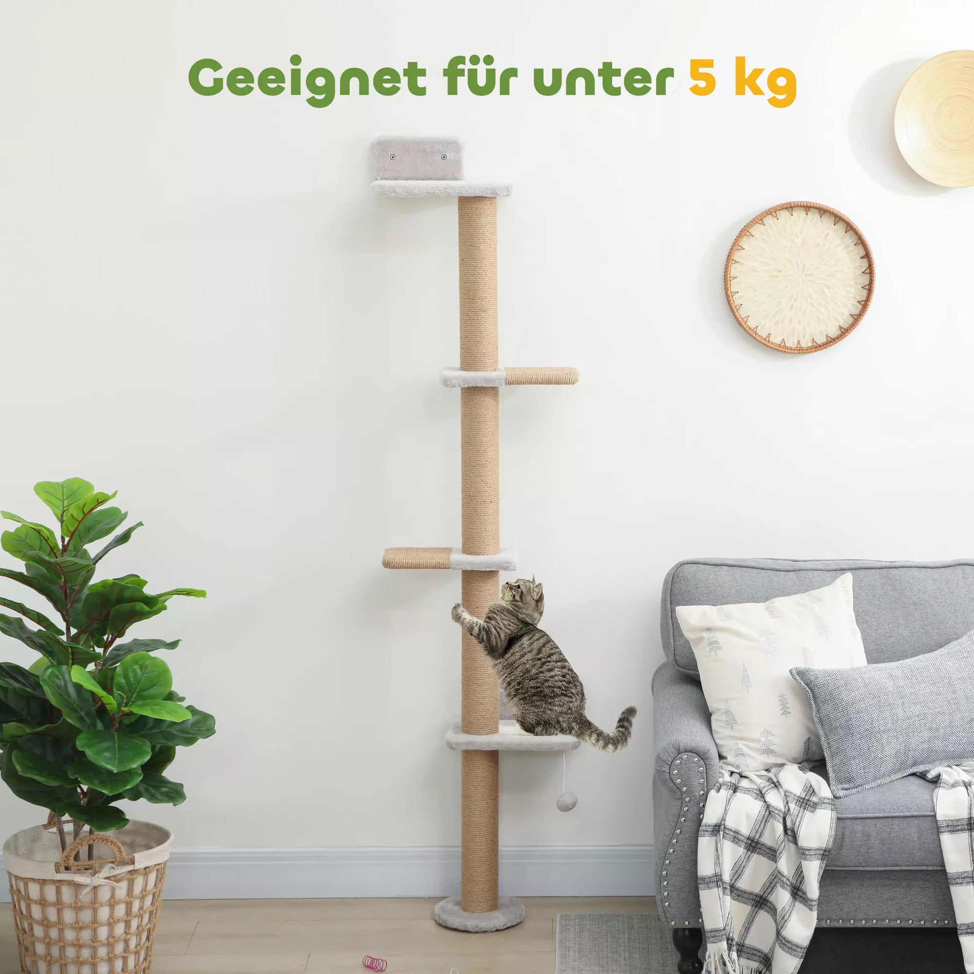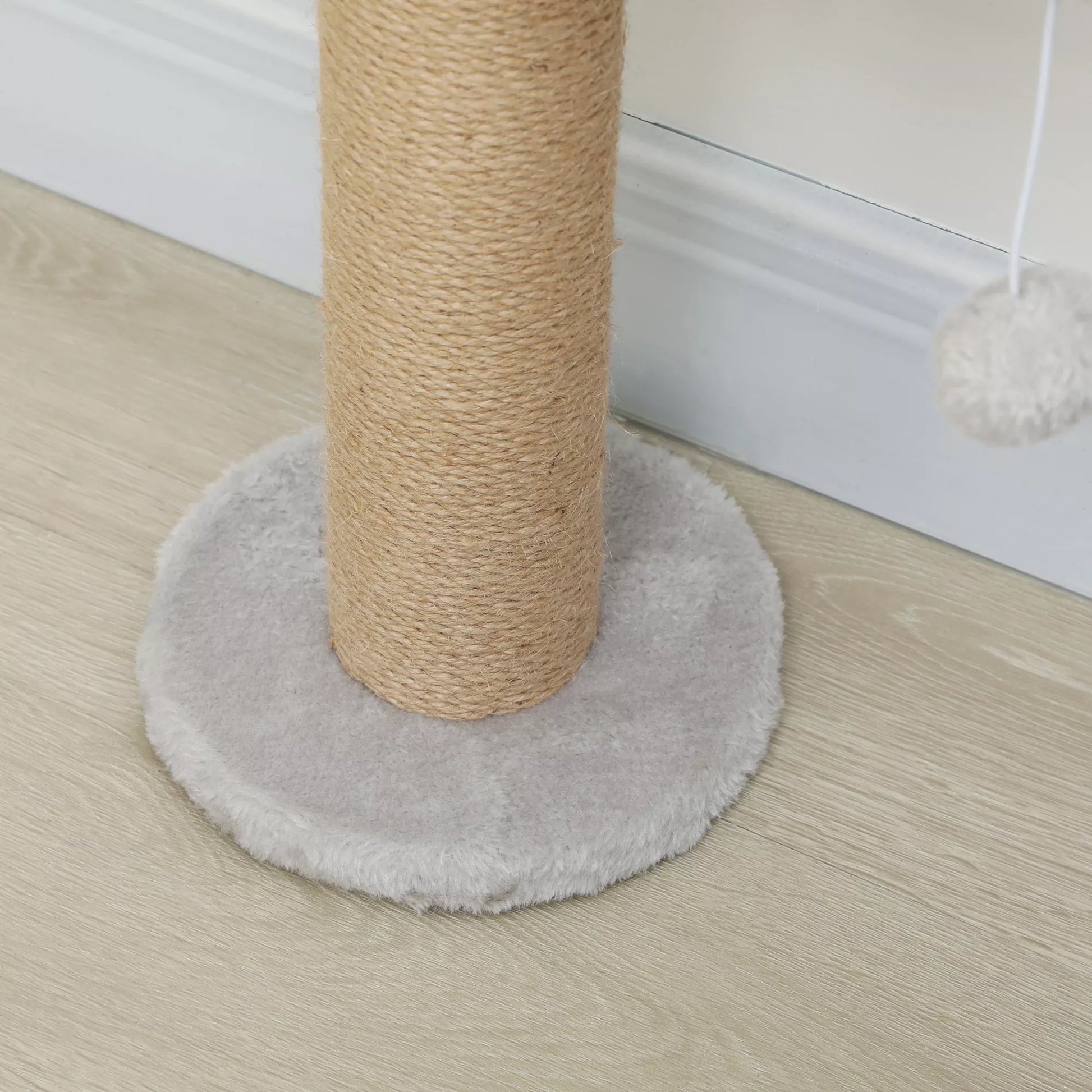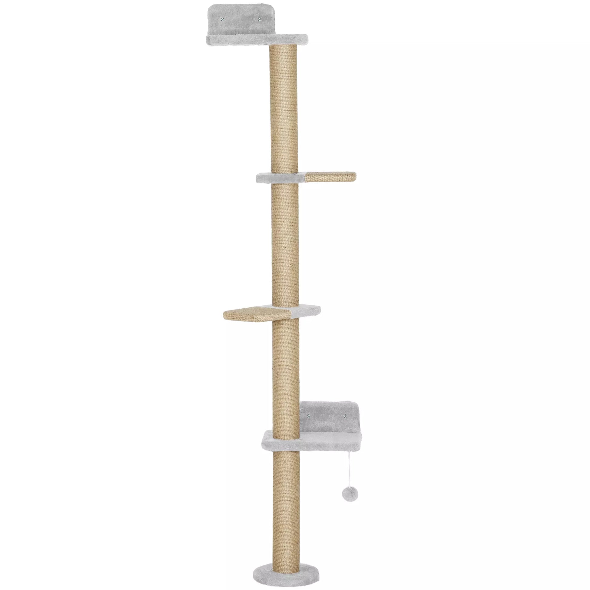 Katės draskyklė, 5 pakopų dizainas, su žaislu, sizaliniai stulpeliai, pliušinis audinys, šviesiai pilka