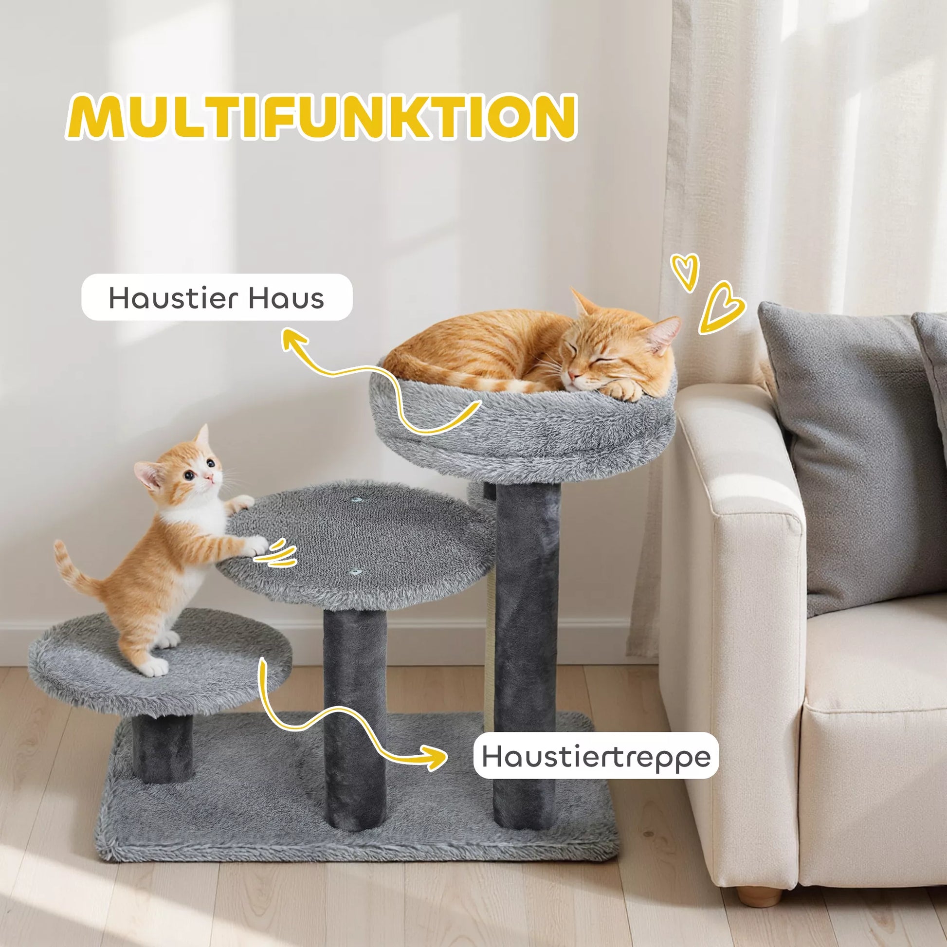 - ✔ Sujungia kačių namelį su gyvūnėlių laipteliais, tinkamas žaisti ir įlipti