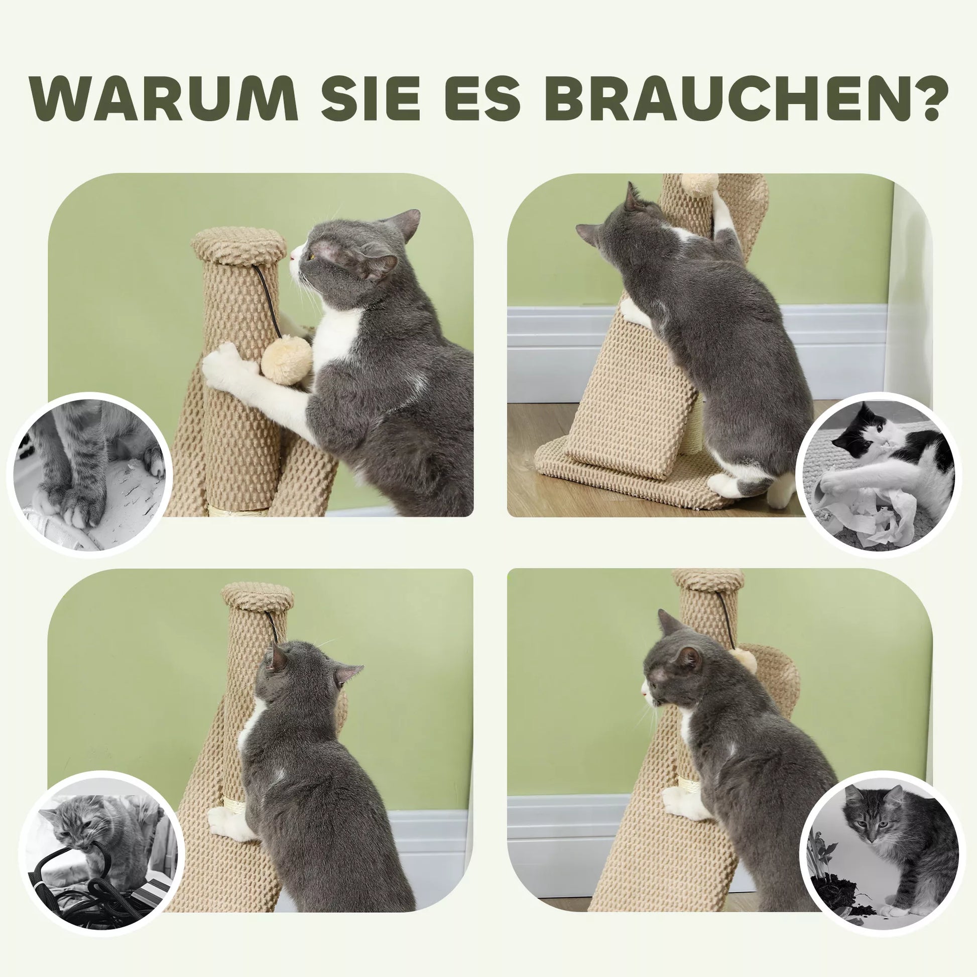 - ✔ Komplekte yra žaislinis kamuoliukas, kad katės būtų užimtos ir pramogautų su draskykle
